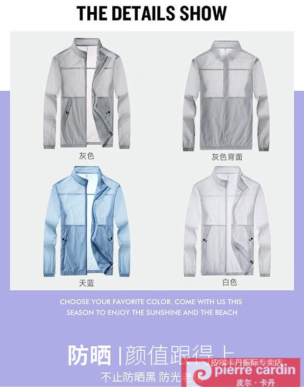 Pierre Cardin Ice Silk Quick-drying Sun Protection Clothing Men's Summer Thin Hoodless Stand Collar Skin Clothing Korean Style Trendy Slim Jacket 9911 Sky Blue M 80-95Jin Jin equals 0.5 kg