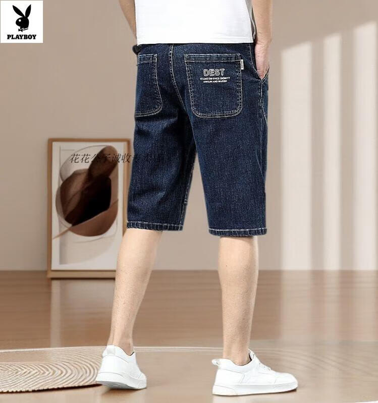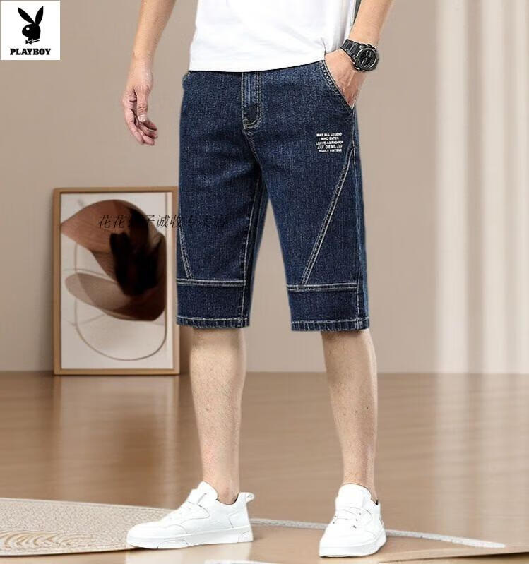 花花公子(PLAYBOY)牛仔短裤夏季男弹力休闲潮牌百搭七分裤商务直筒弹力外穿韩版中裤 831浅蓝色 31 2尺4