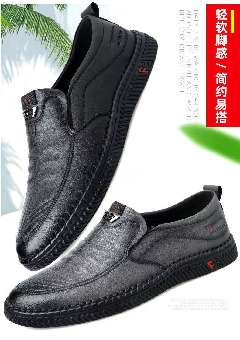 回力君真软皮豆豆鞋男式夏秋新款商务休闲男式皮鞋一脚蹬舒适透气厚底 677棕色 39