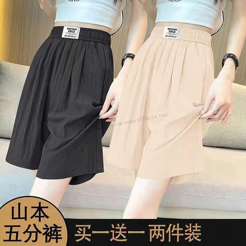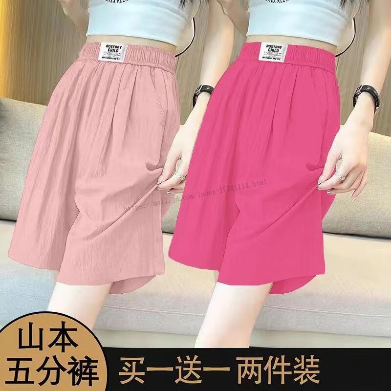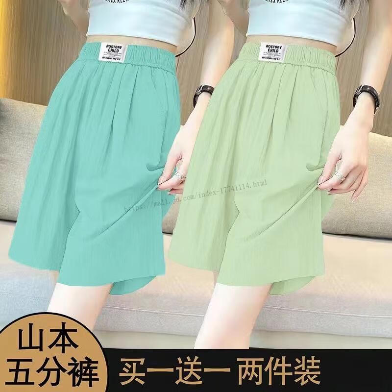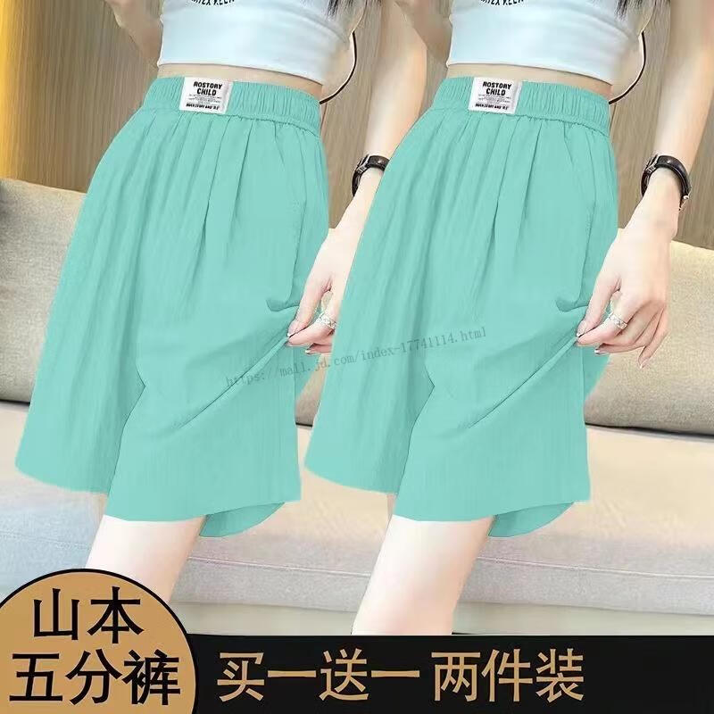 Hengyuanxiang Ice Silk Shorts Women's Outerwear Five-Fifth Pants 2025 New Summer Thin Draping Loose High Waisted Wide Leg Casual Pants 9934 Mint Green + Pink 2XL Recommended 130-145 Jin Jin equals 0.5 kg