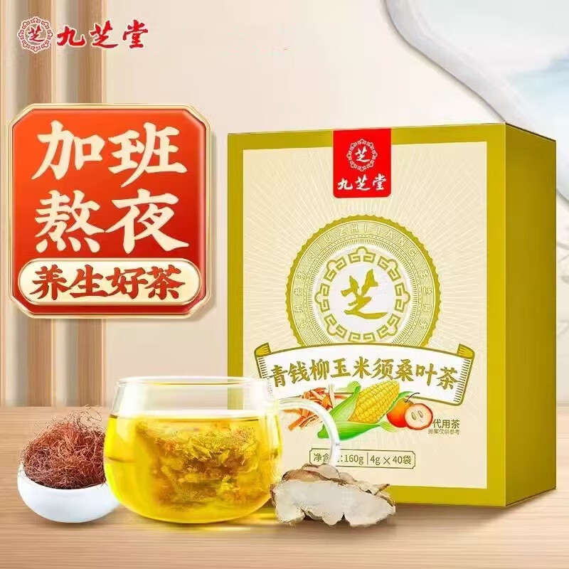 Jiuzhitang Qingqianliu corn silk mulberry leaf tea 40 bags burdock root yellow tartary buckwheat kudzu root tea middle-aged and elderly health tea bags 1 box trial pack 5g*40 bags