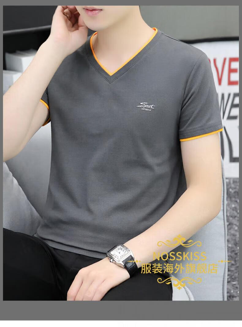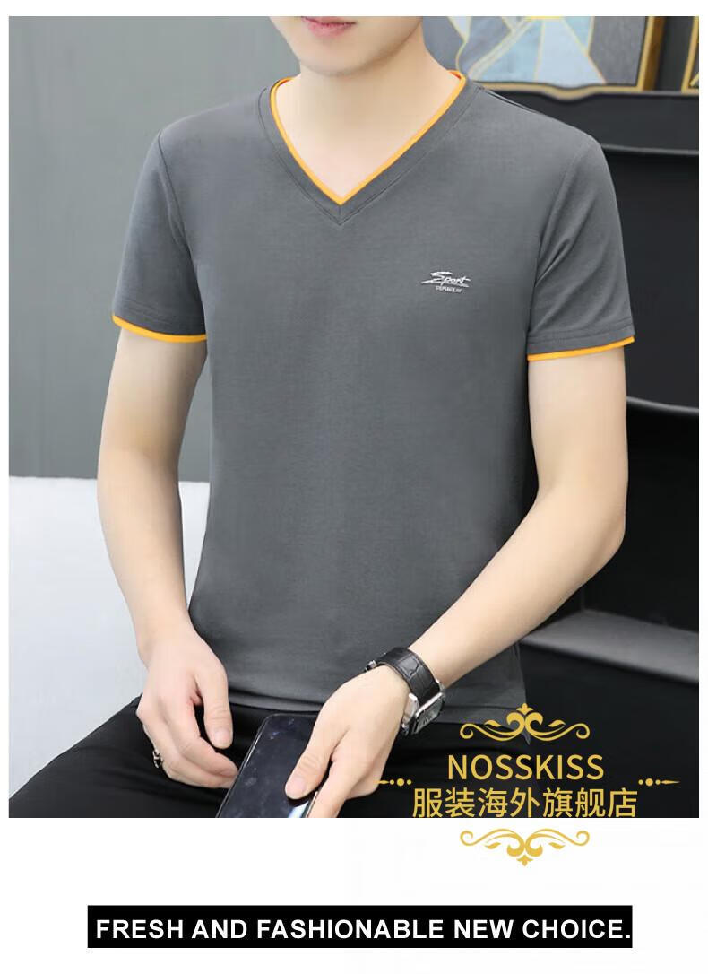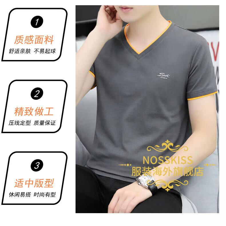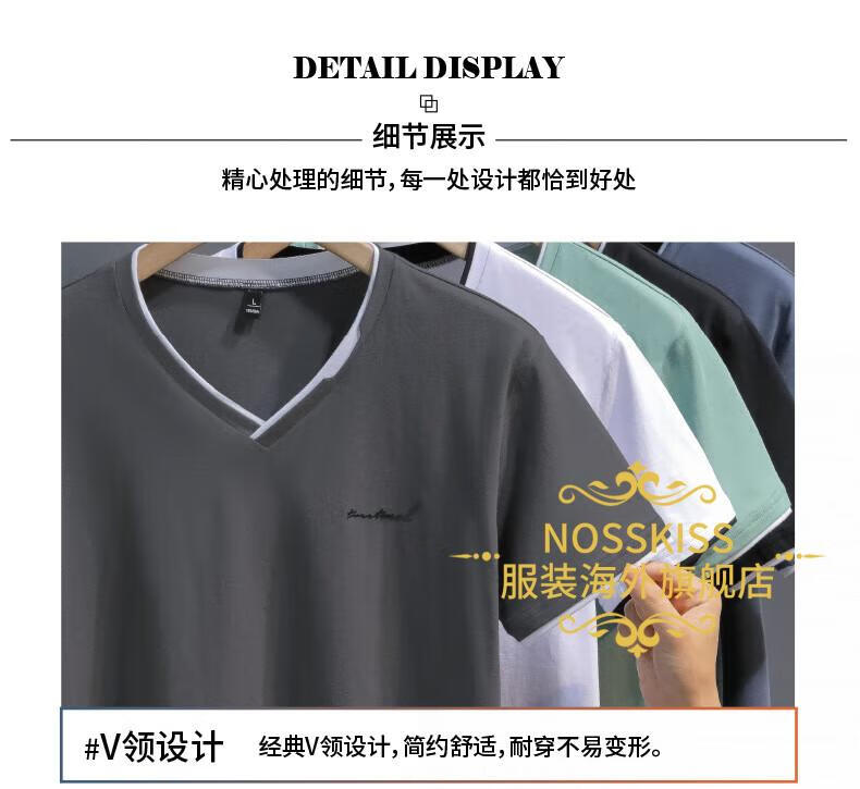 NOSSKISS轻奢高档男士V领短袖T恤新款弹力男士T恤打底衫男式半袖休闲 694豆绿 3XL