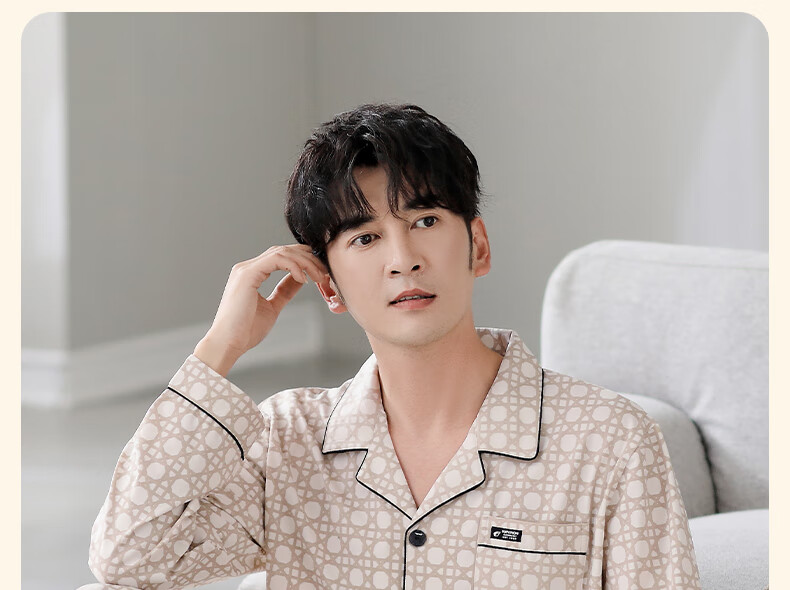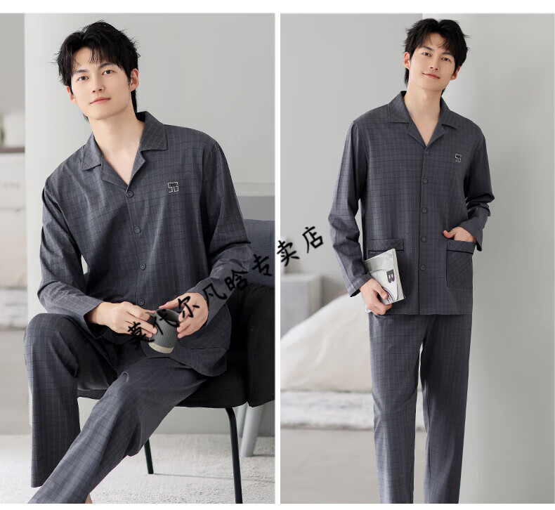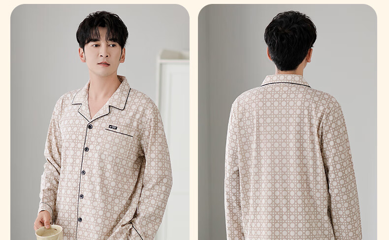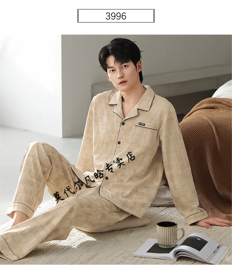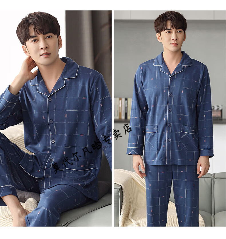 莫代尔睡衣男士春秋款纯棉长袖2025新款秋冬爸爸男款秋季薄款男式家居服 3882 3XL (185码)建议穿着体重180-200