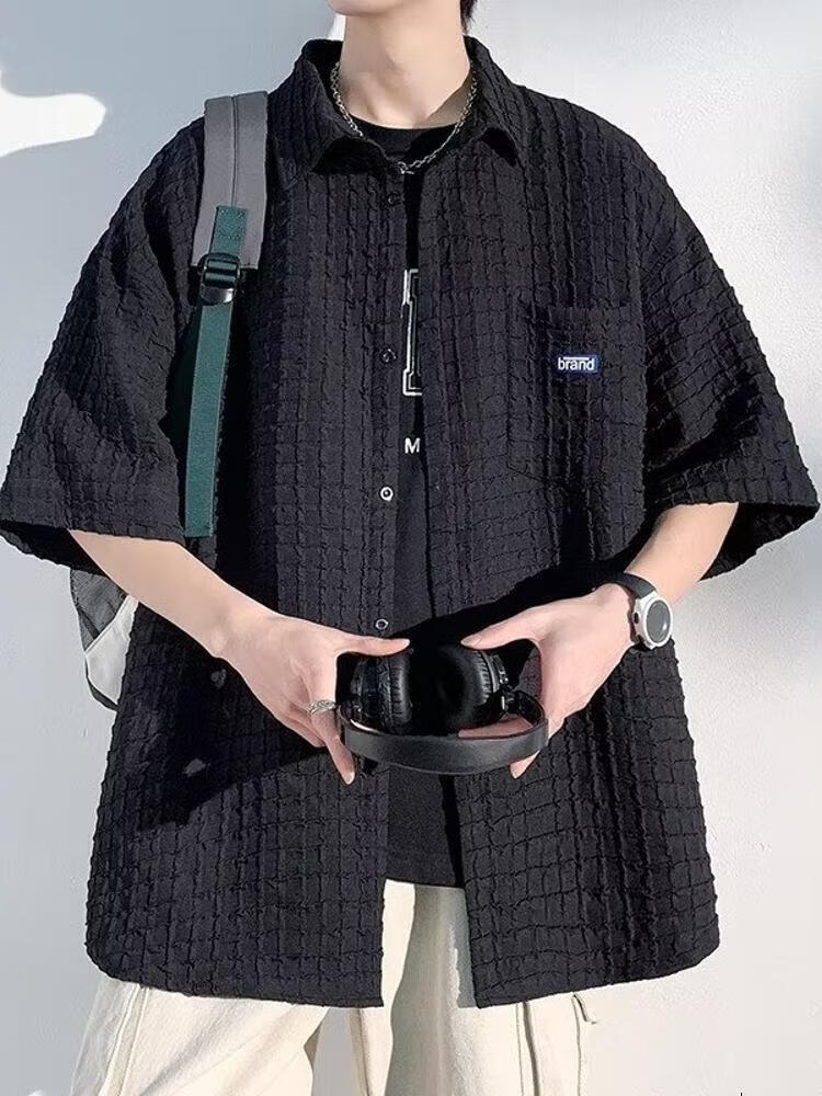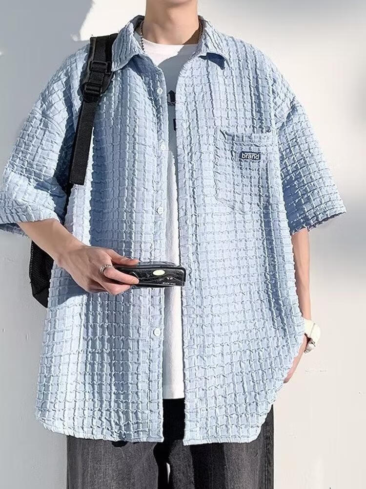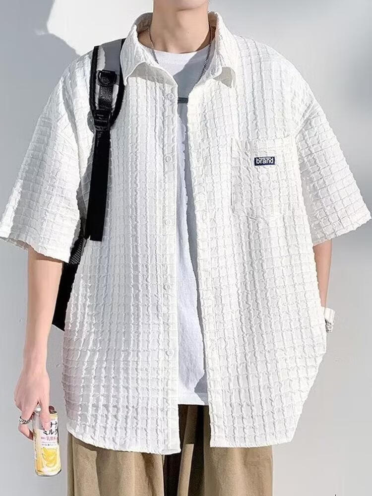 Tang Hao Solid Color Waffle Short Sleeve Shirt Men's Summer American Retro Five-Sleeve Shirt Design Niche Casual Jacket White XL