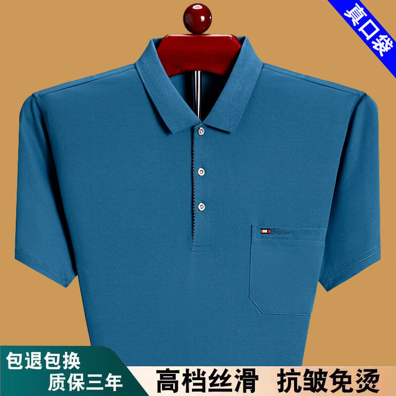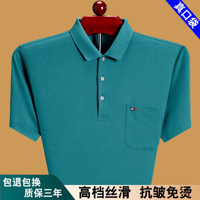 Hengyuanxiang 2025 Summer Fashion Men's Short Sleeve T-Shirt Lapel Top Loose Thin Dad Pure Cotton Polo Shirt with Pockets Red 6636 M 165 Recommended 90-115 Jin Jin equals 0.5 kg Wear