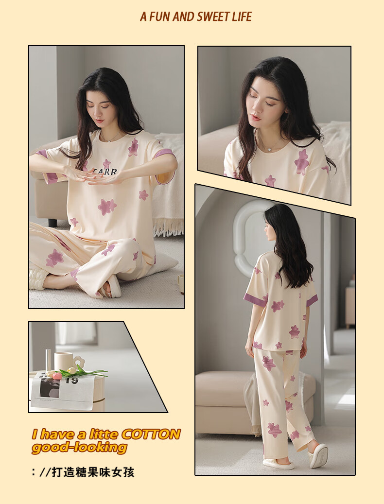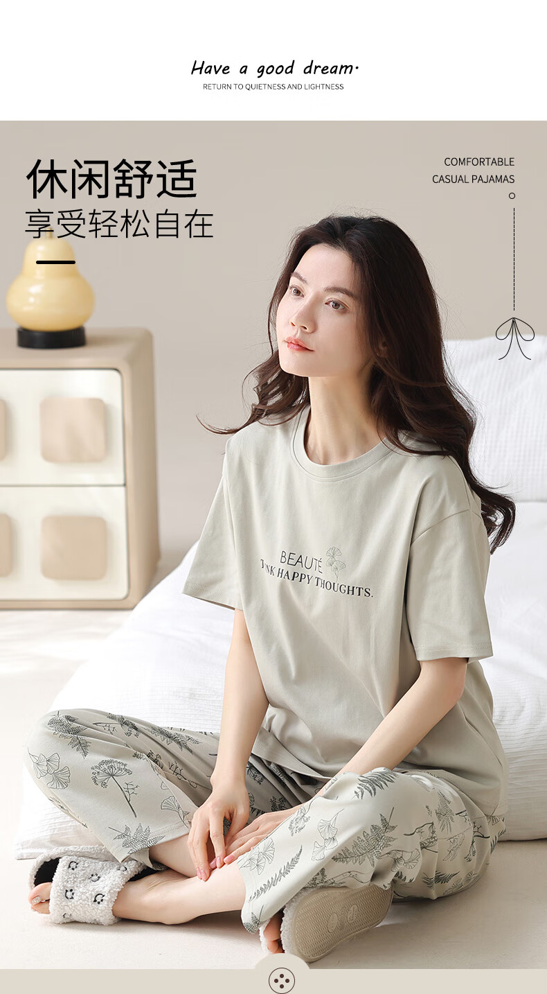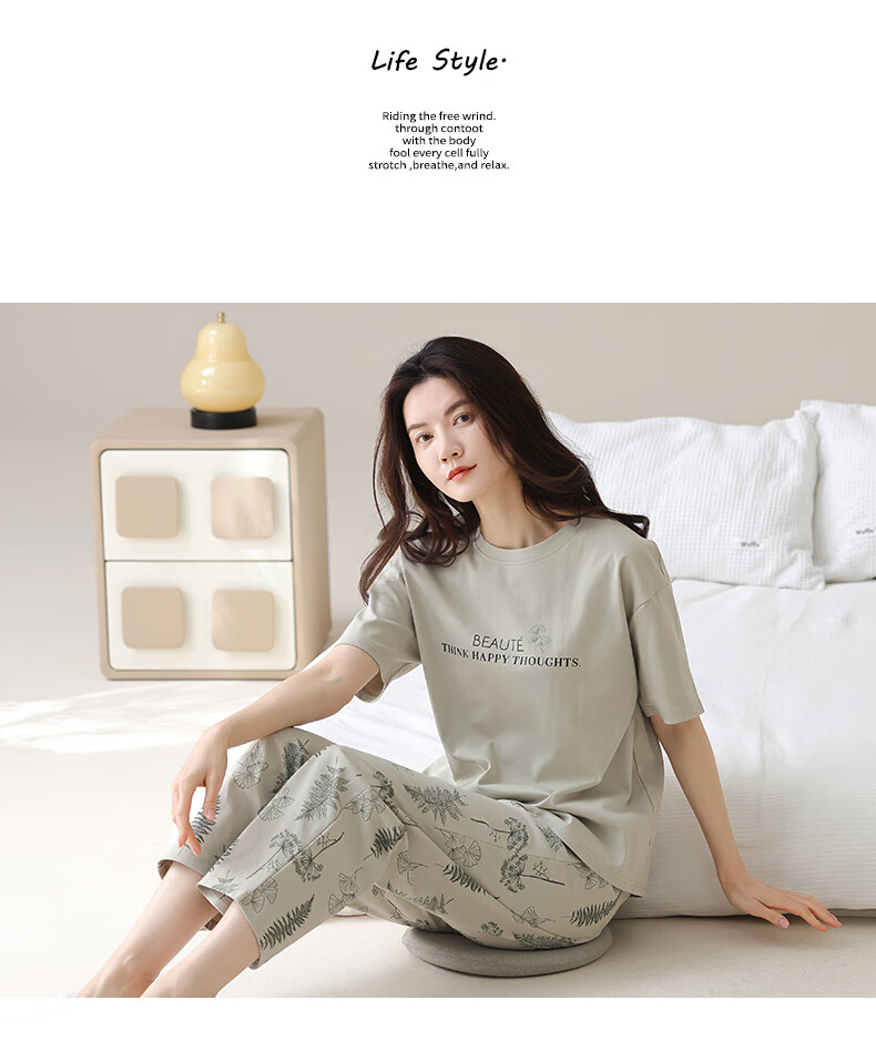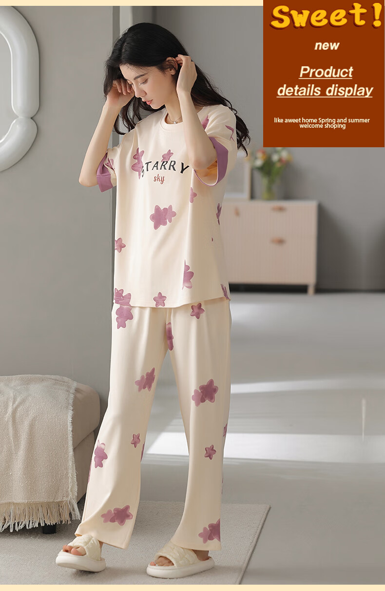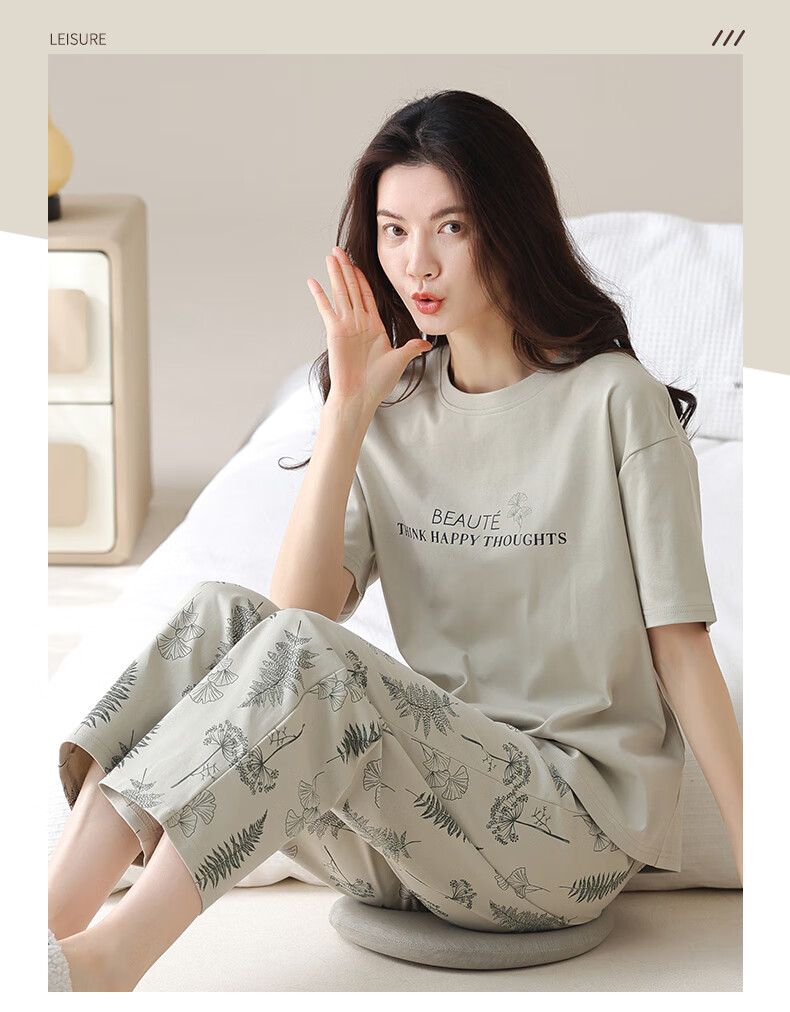 LangSha 2025 new pajamas for women summer short-sleeved trousers can be worn outside casual home clothes suit YZT9721 M Recommended 80-100Jin Jin equals 0.5kg to wear