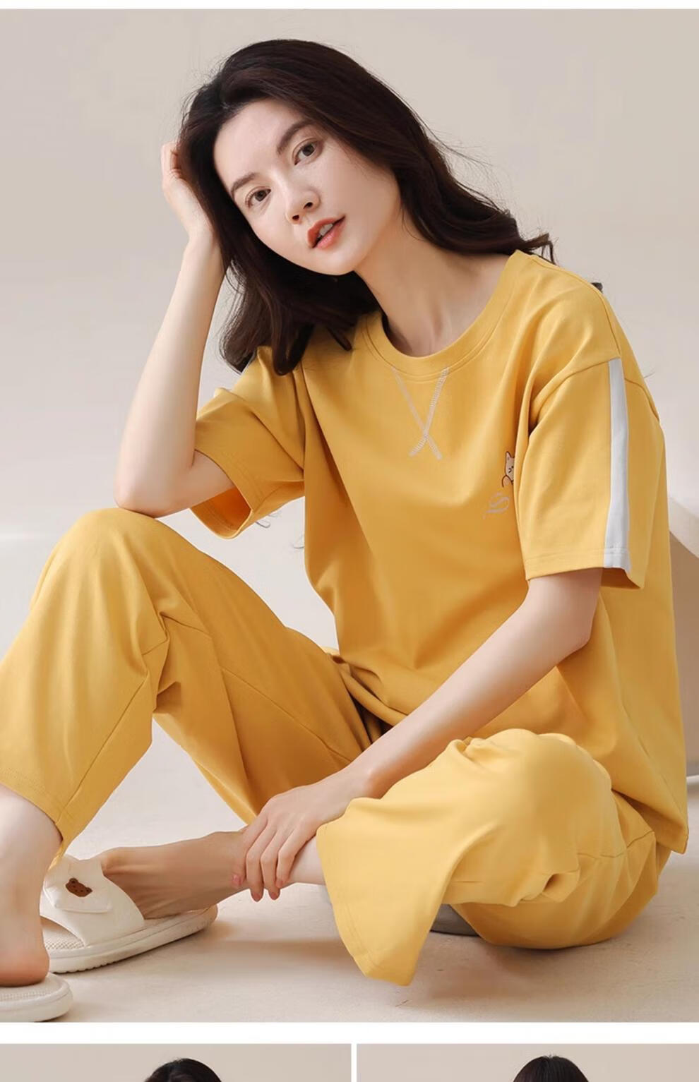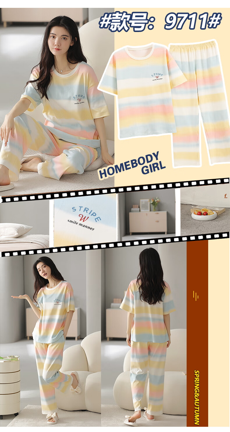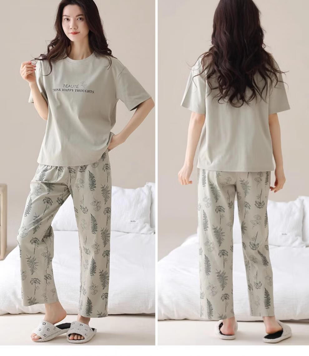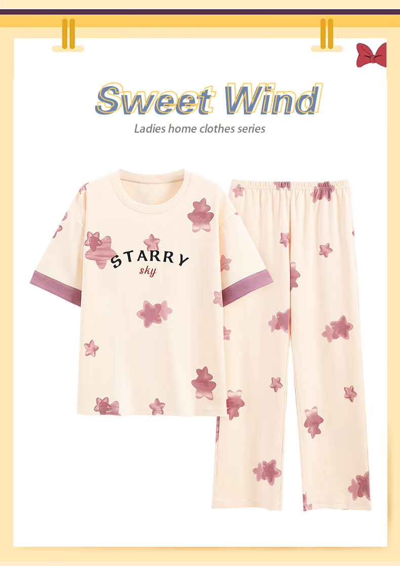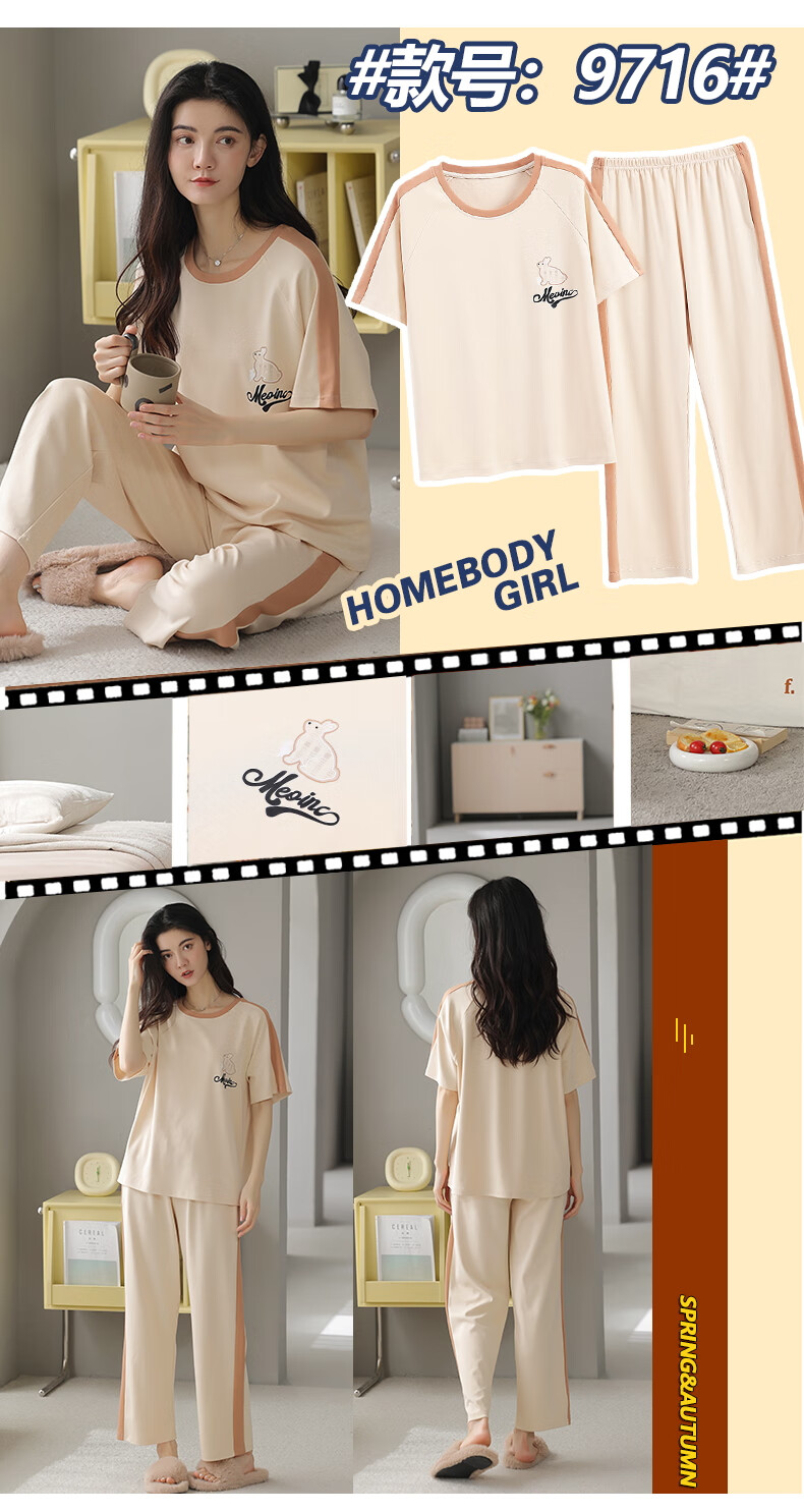 LangSha 2025 new pajamas for women summer short-sleeved trousers can be worn outside casual home clothes suit YZT9721 M Recommended 80-100Jin Jin equals 0.5kg to wear