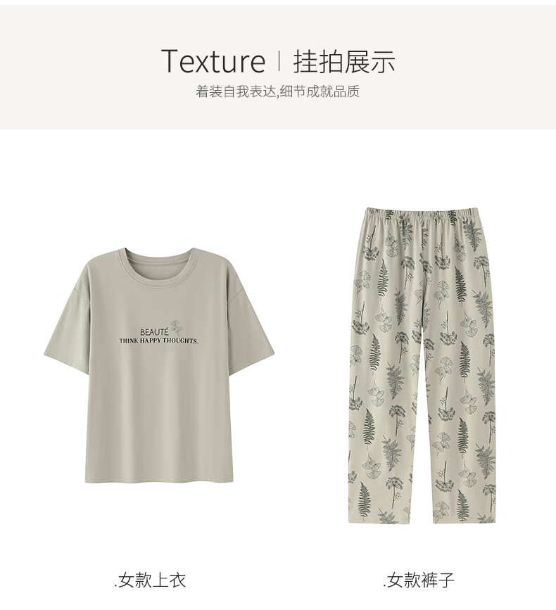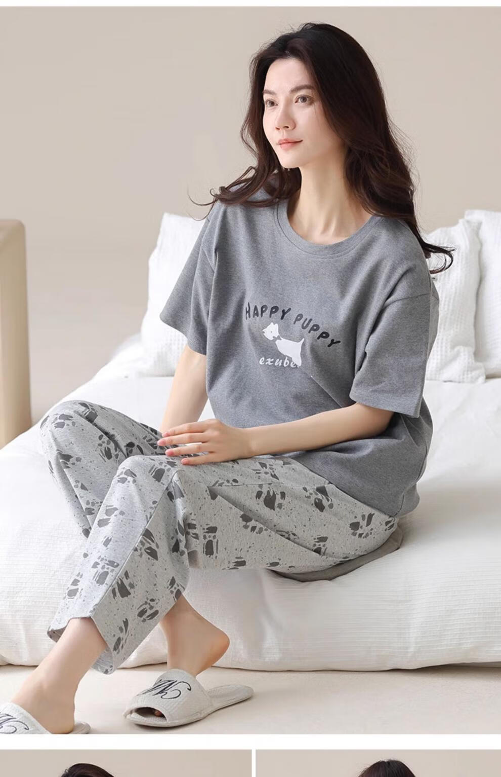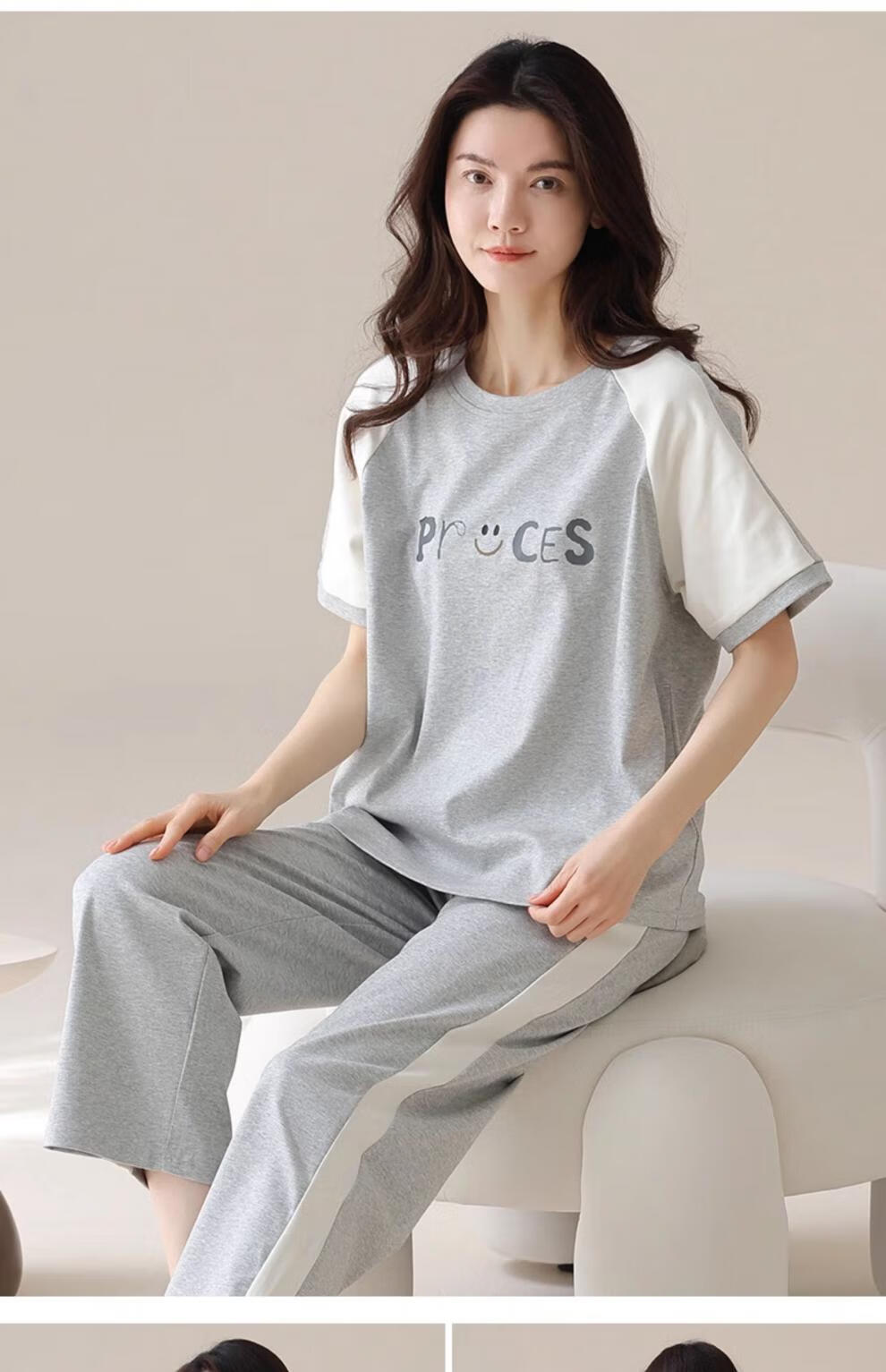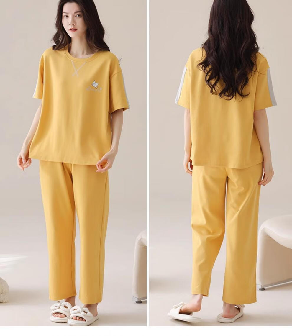 LangSha 2025 new pajamas for women summer short-sleeved trousers can be worn outside casual home clothes suit YZT9721 M Recommended 80-100Jin Jin equals 0.5kg to wear
