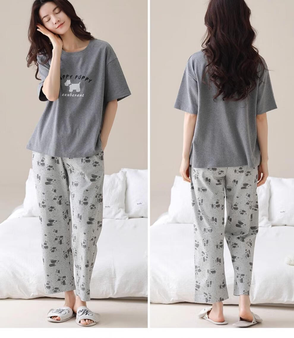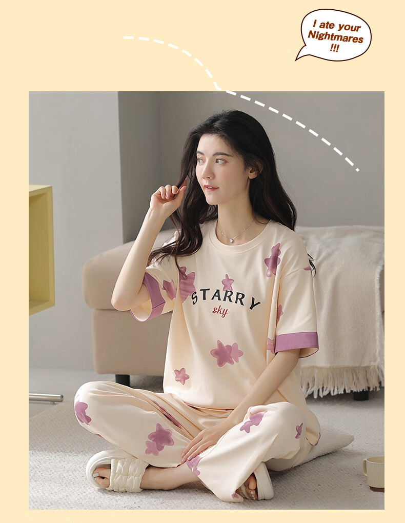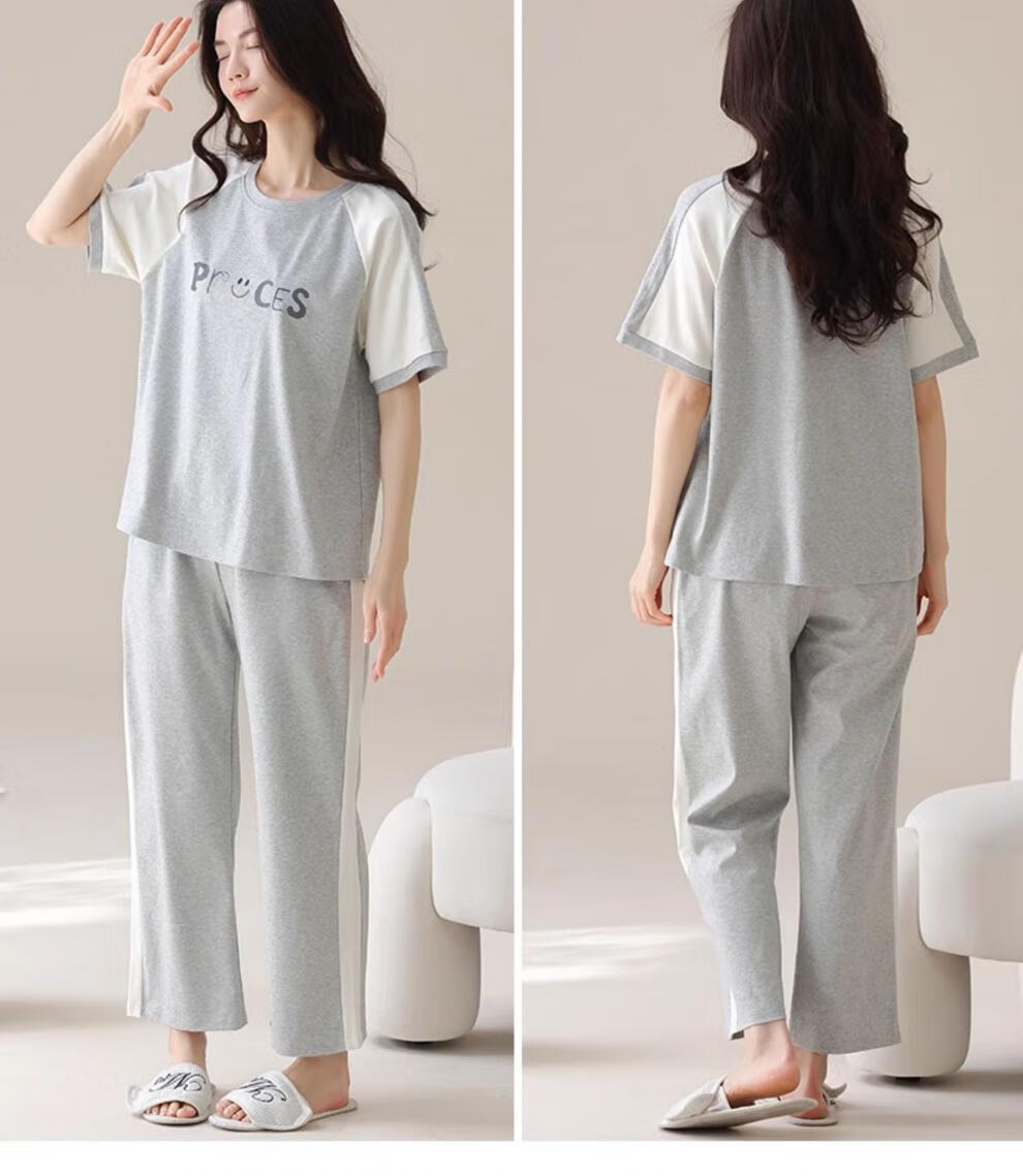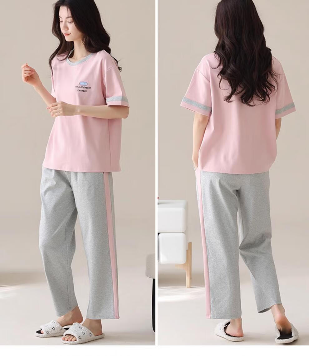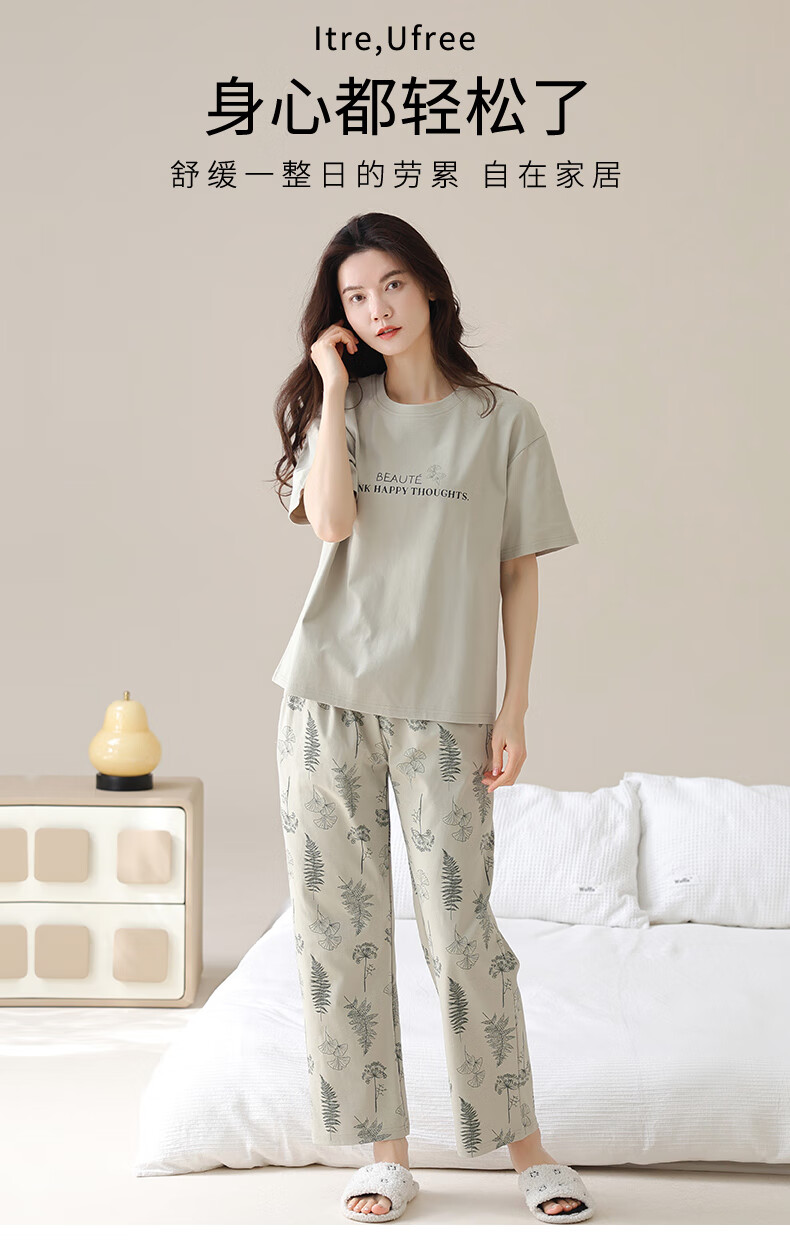 LangSha 2025 new pajamas for women summer short-sleeved trousers can be worn outside casual home clothes suit YZT9721 M Recommended 80-100Jin Jin equals 0.5kg to wear