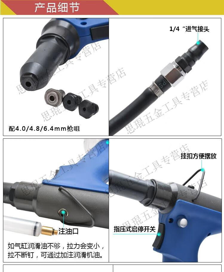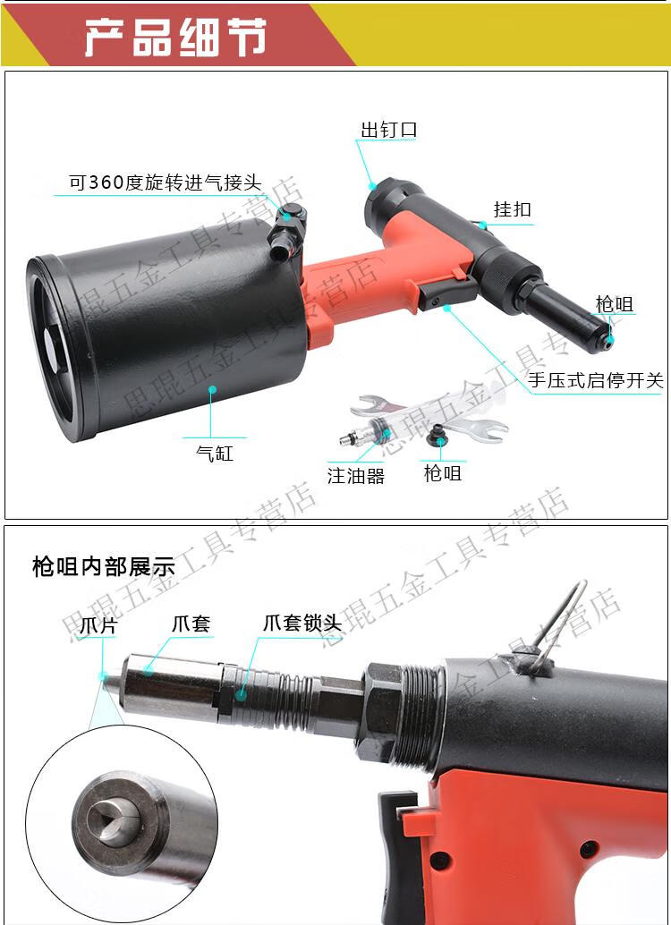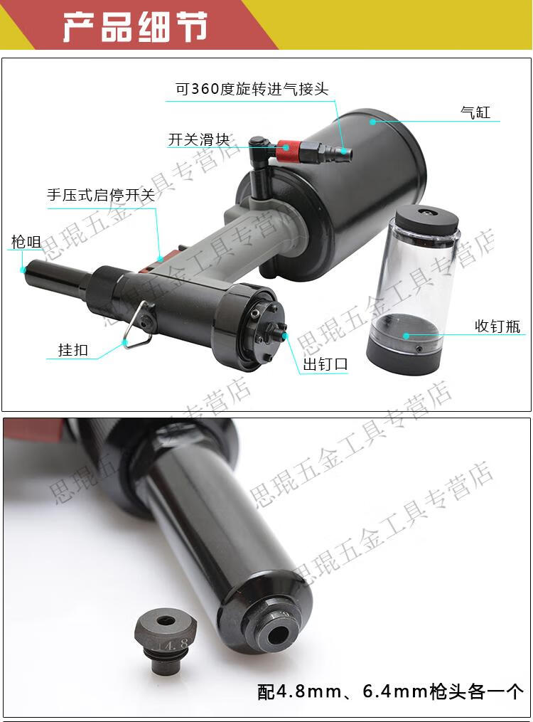 XMSJ automatic nail suction nail gun pneumatic rivet gun pneumatic nail puller 4.8mm/6.4mm kolahai 6.4 automatic nail suction model BD-4837