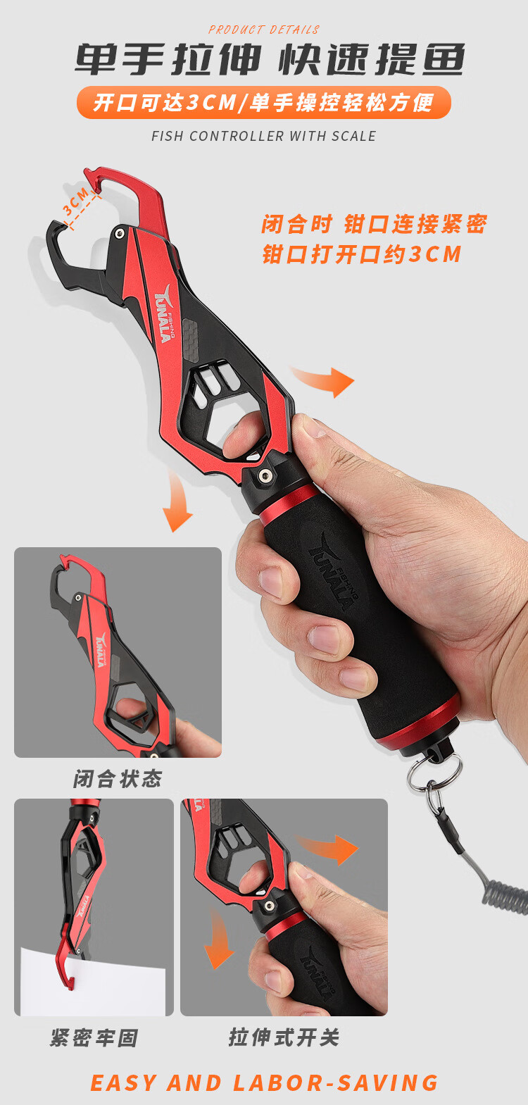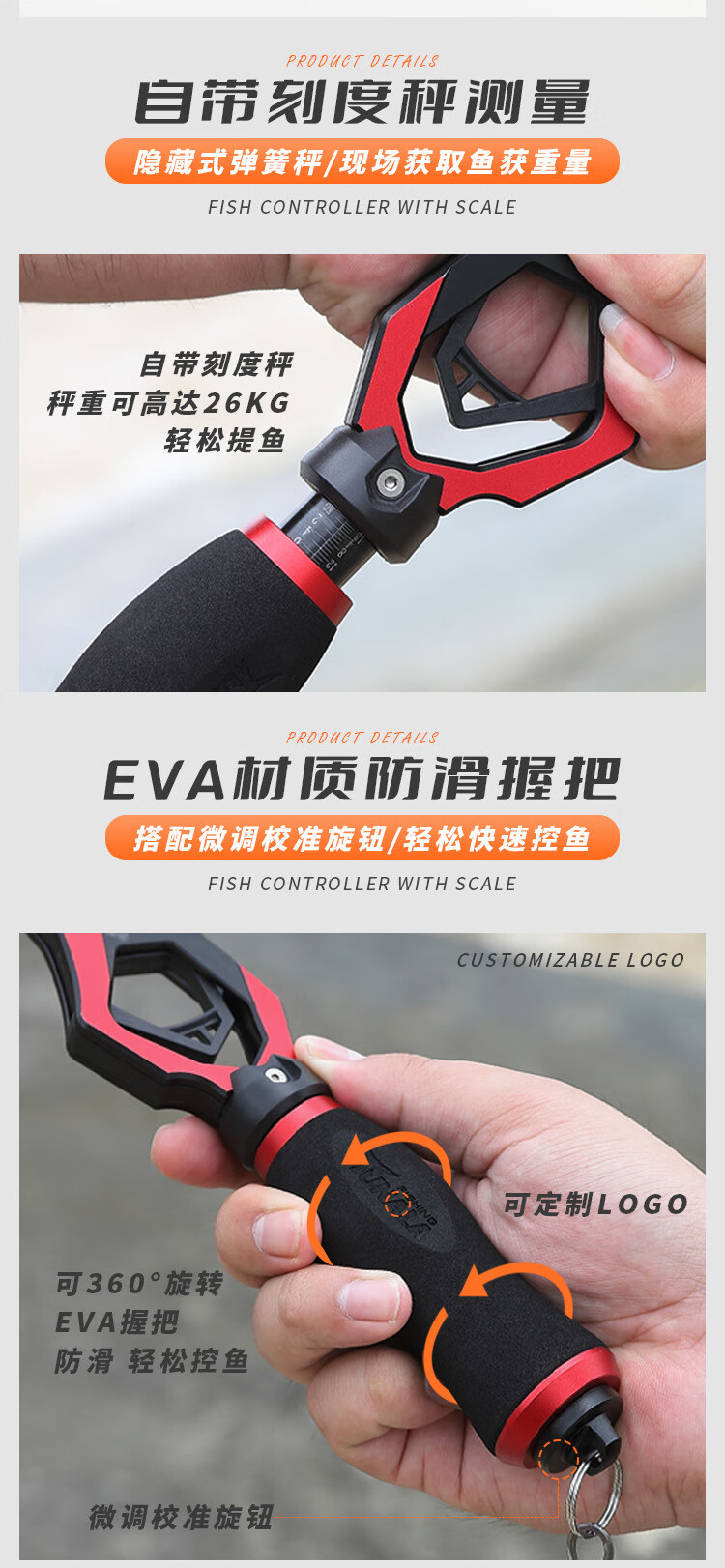 360 degree rotating 26kg aluminum alloy large fish control lure pliers set with weighing fish gripper fishing tool FG-1047A red and black lure pliers