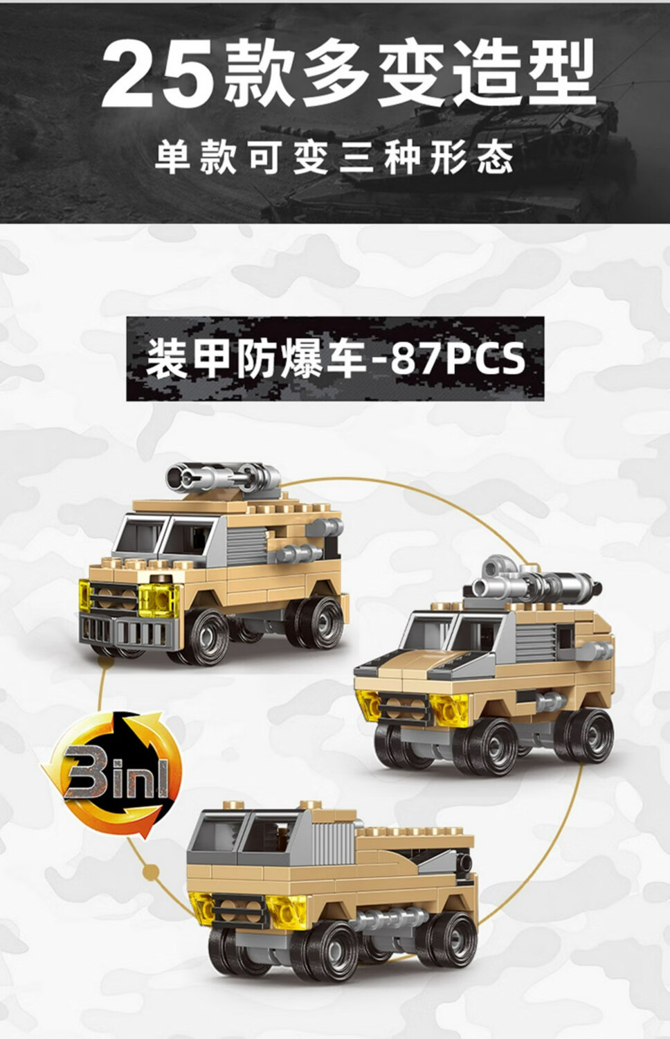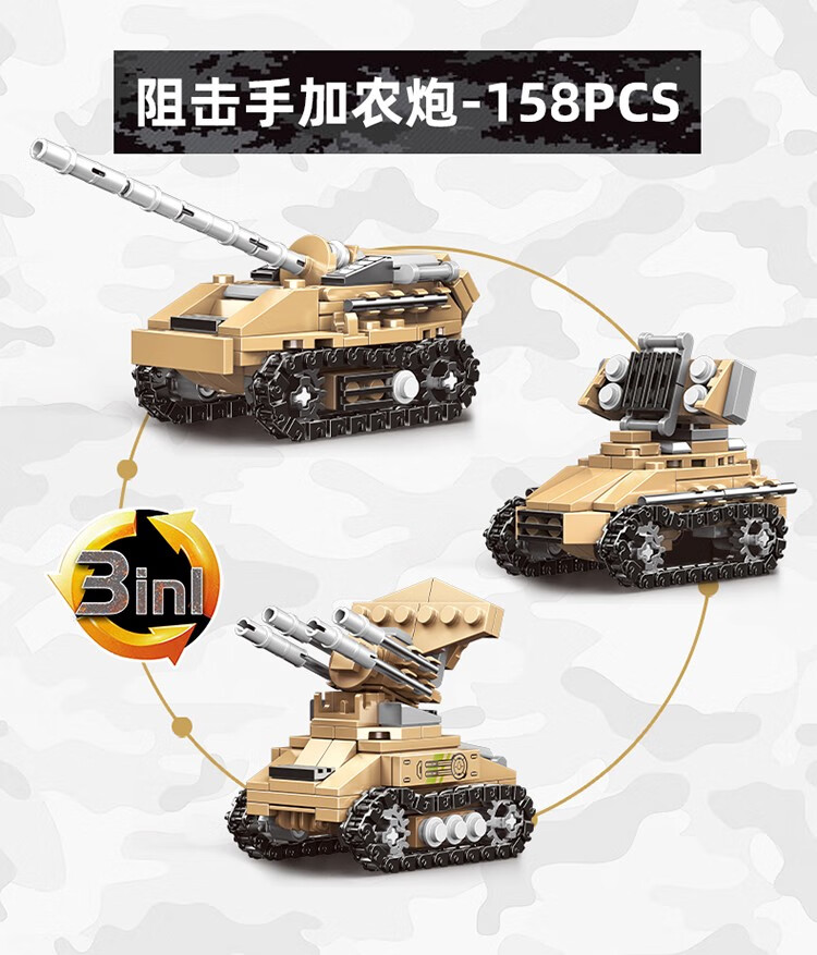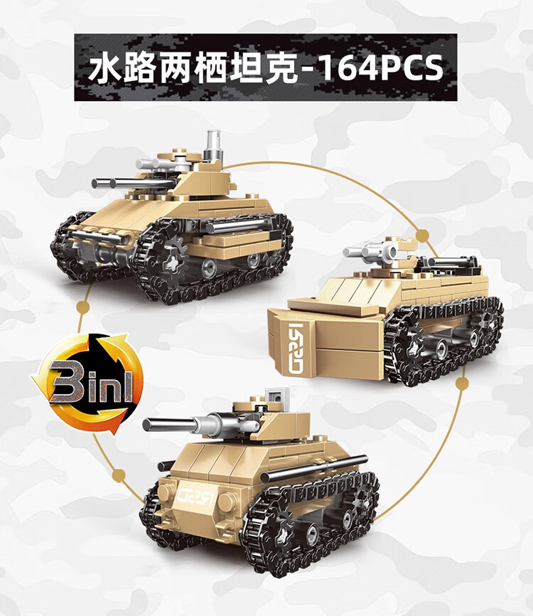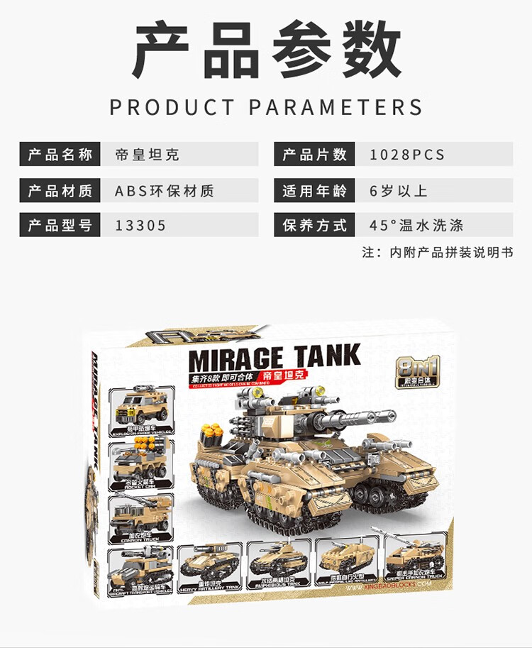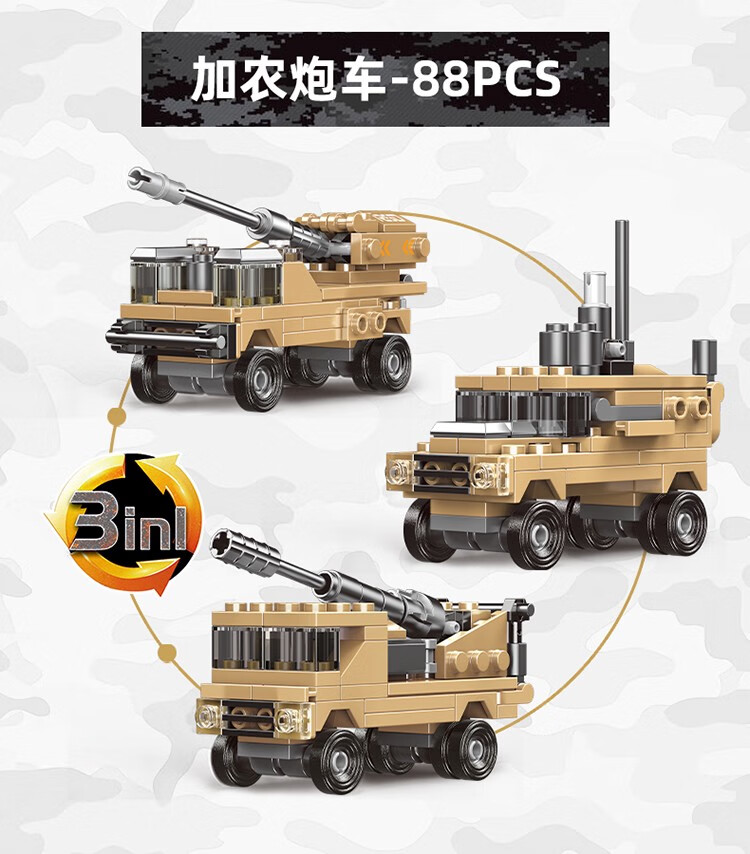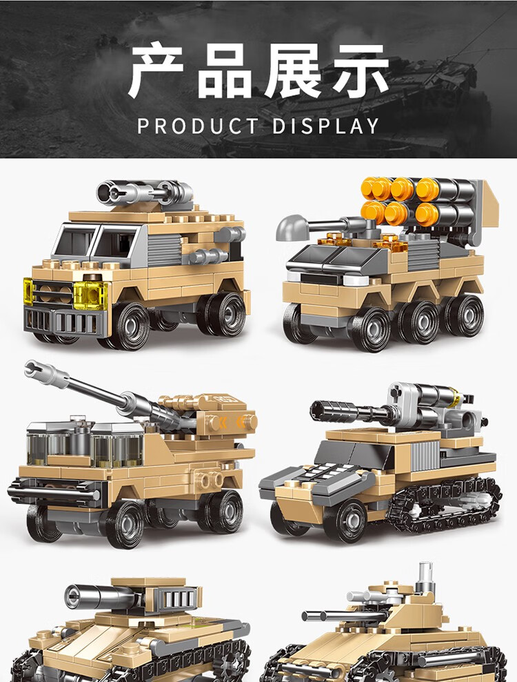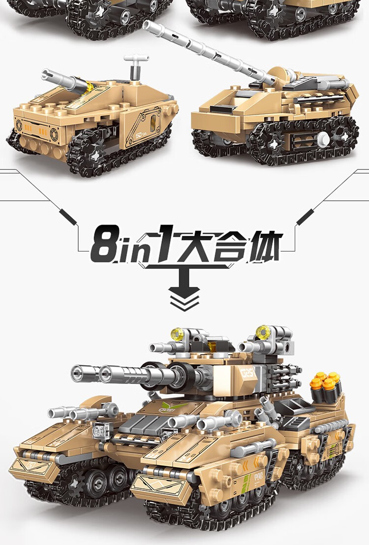 Jiaai Chinese tank building blocks military model tracked armored vehicle brain assembly boy Emperor tank 8 models set 1048 particles in stock