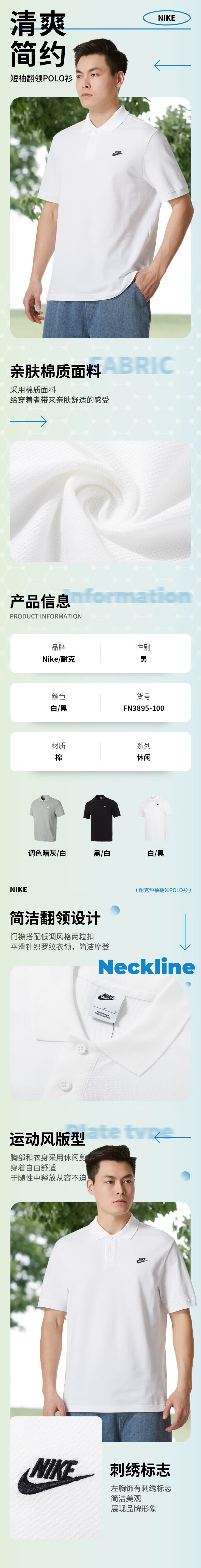 Nike (NIKE)g Anzug reine Baumwolle Herren Wintersport POLO-Shirt Revers Kurzarm-T-Shirt Jugend hübsche Strickhose Freizeithose FN3895-100+FQ4331-010 S/165