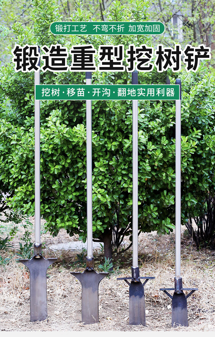 重型挖树锹锰钢加厚起苗洛阳铁铲户外断根铲子农用挖土坑神器铁锹 重型3523挖树锹驰不含杆