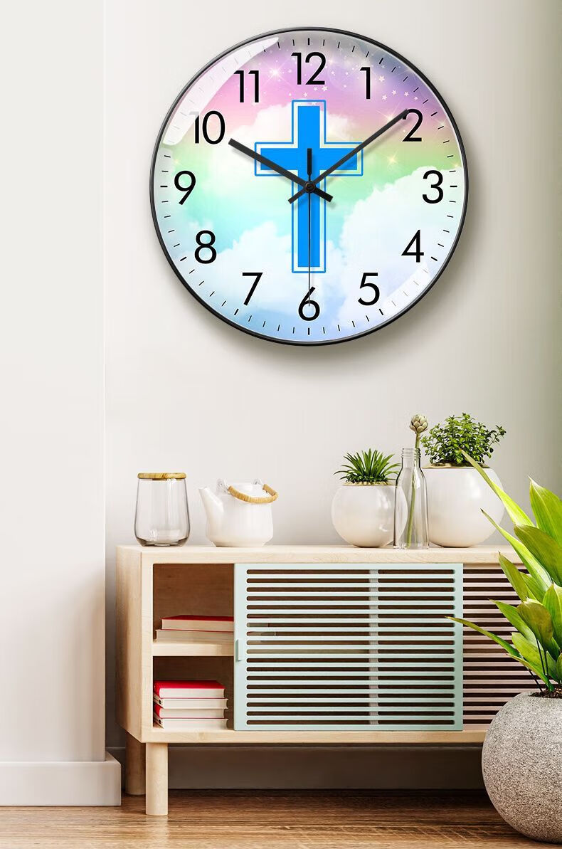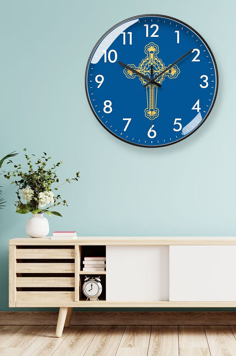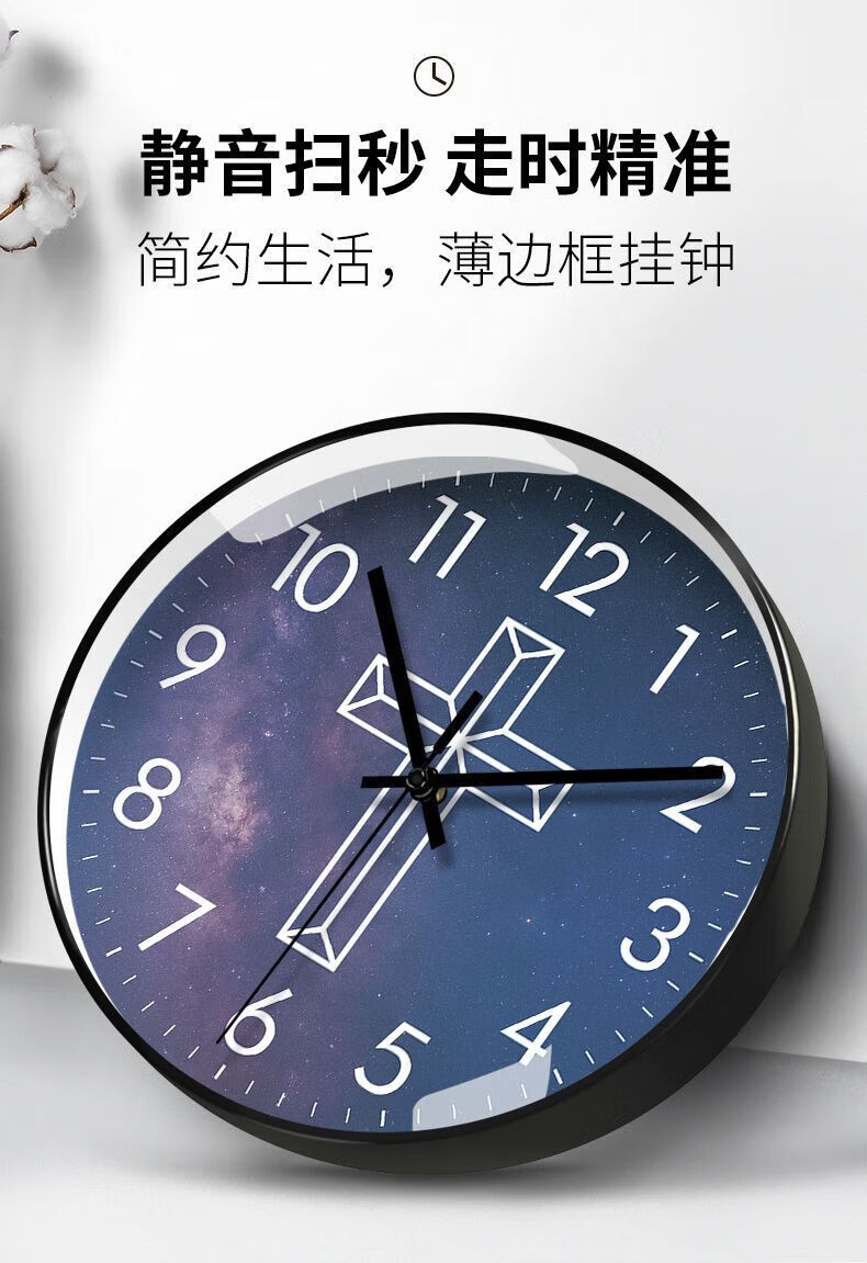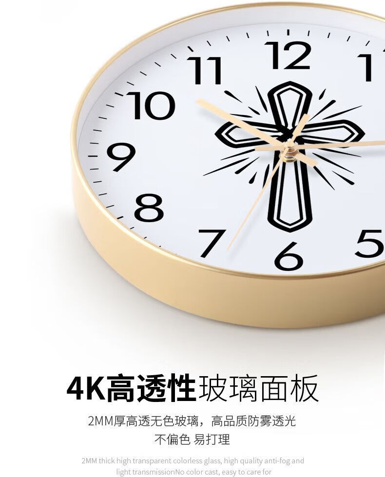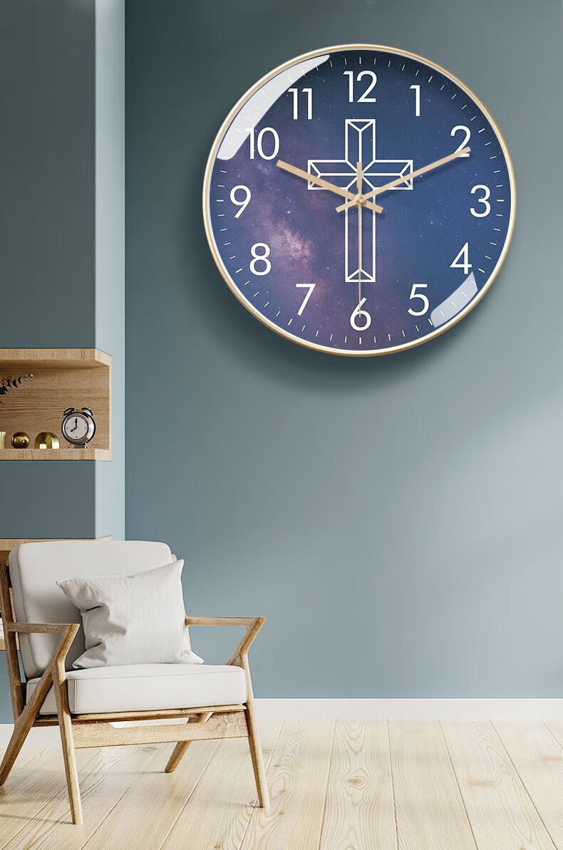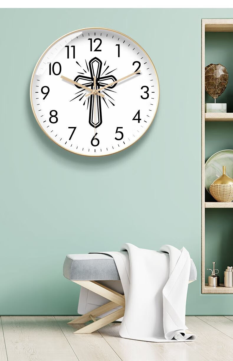 Creative Cross Wall Clock Living Room Bedroom Wall-Mounted Silent Clock Simple Clock Home Wall-Mounted Silent BF3271-Black Frame Golden Needle 8-inch Super Silent Stone Clock