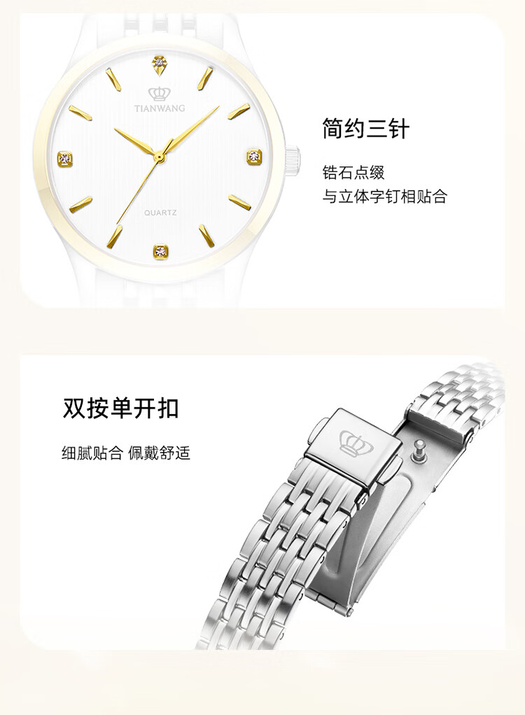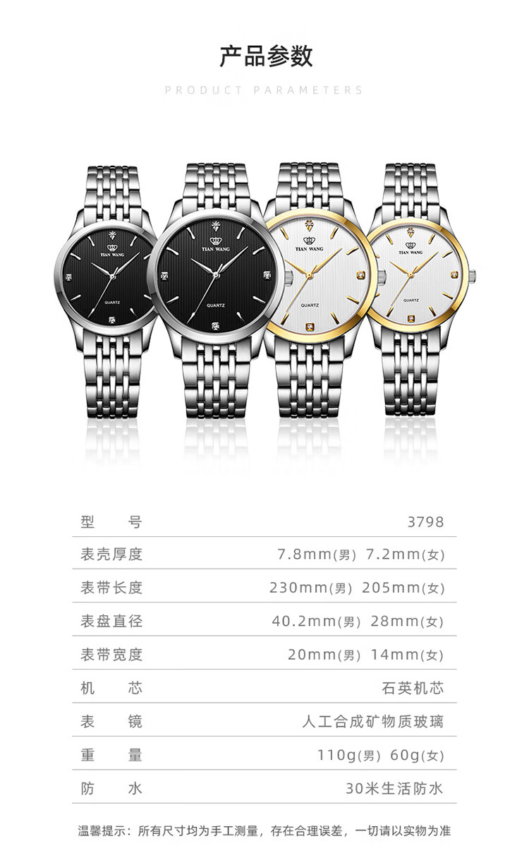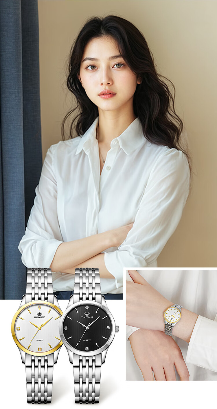 TIAN WANG Uhr, wasserdichtes Stahlband, Quarzuhr, einfache lässige Herrenuhr, modische Damenuhr, Paaruhr, Geburtstagsgeschenk, weiße Platte, Herrenuhr 3887