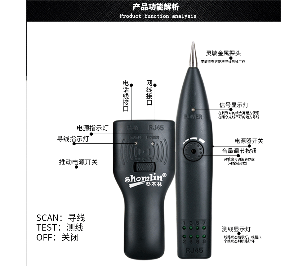 Shanmulin Shanmulin SML-868TS-8 network line finder set line finder multi-function line patrol instrument network cable checker
