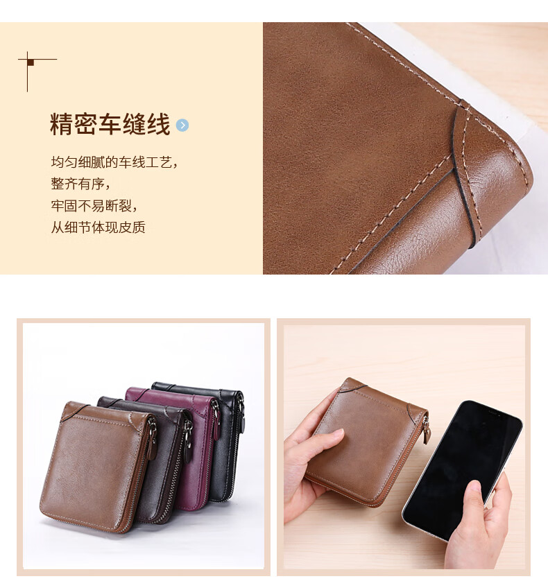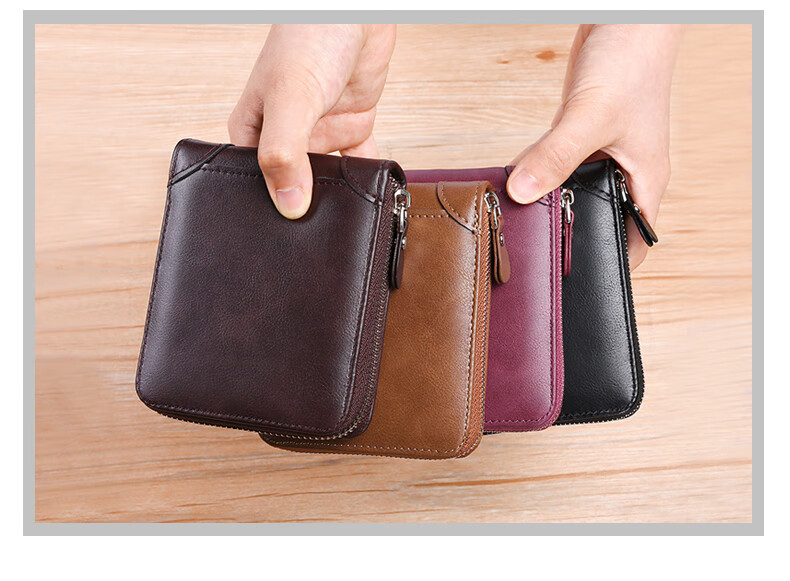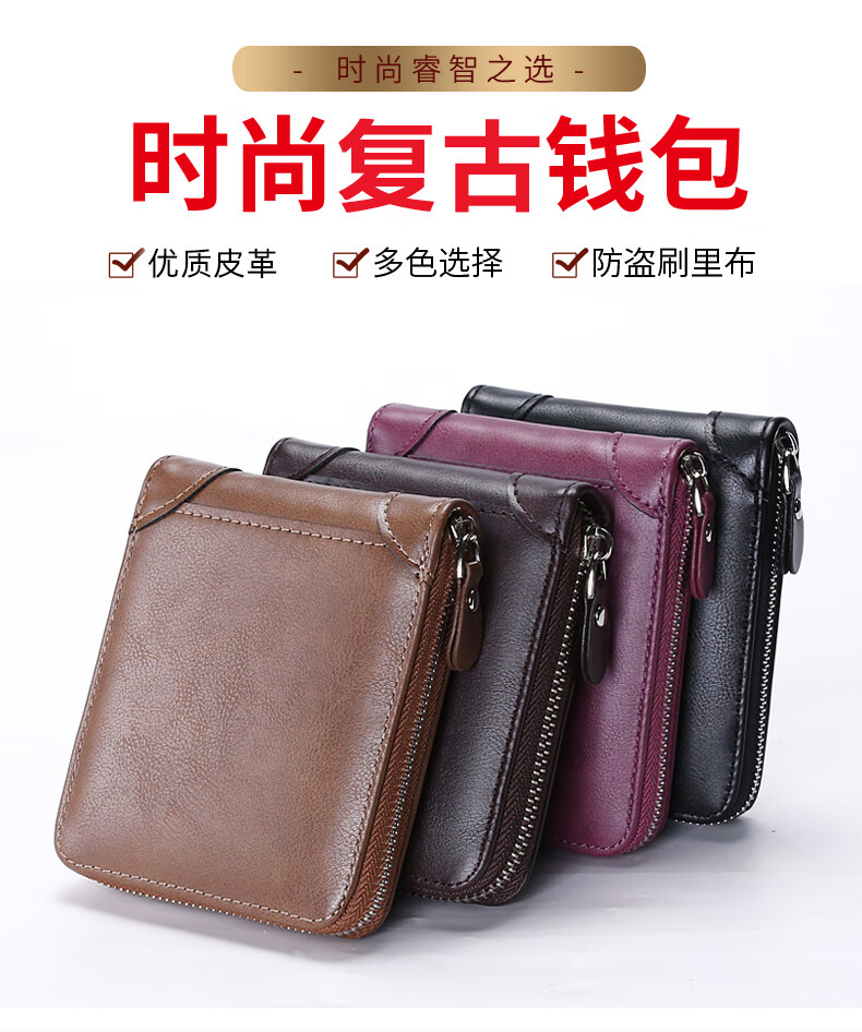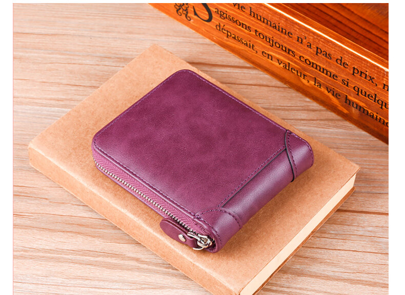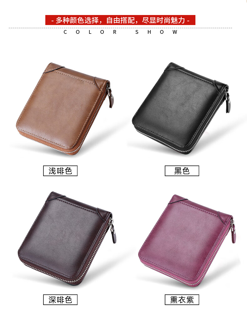 QIGER女士钱包女短款钱夹新款韩版多功能折叠皮夹拉链卡套小钱夹卡包 熏衣紫【防盗刷】
