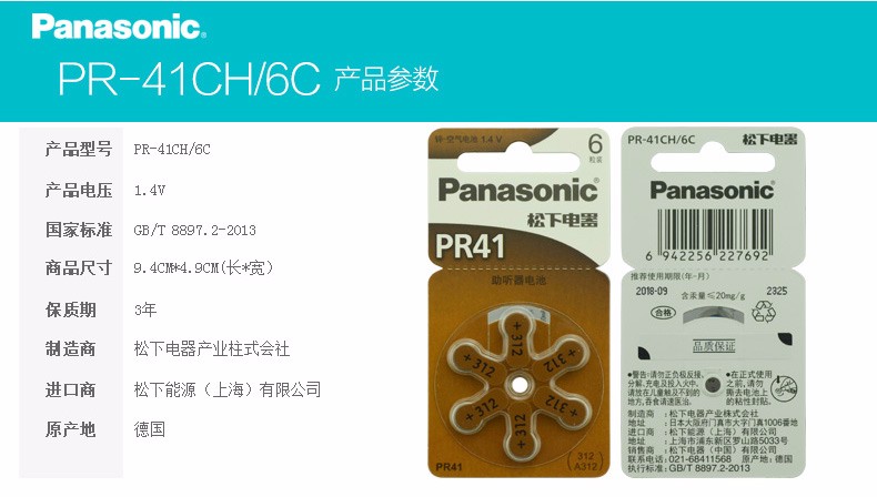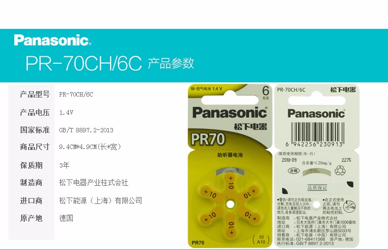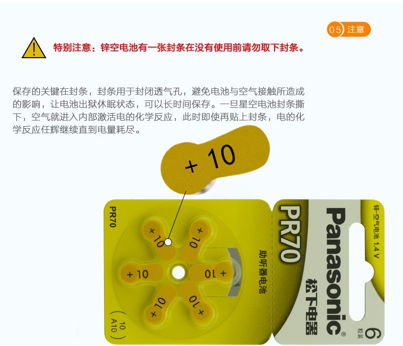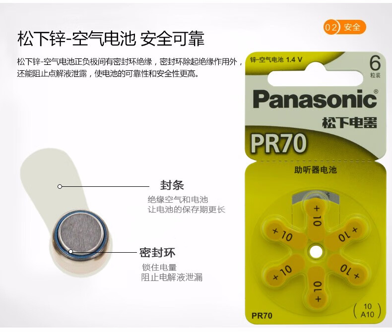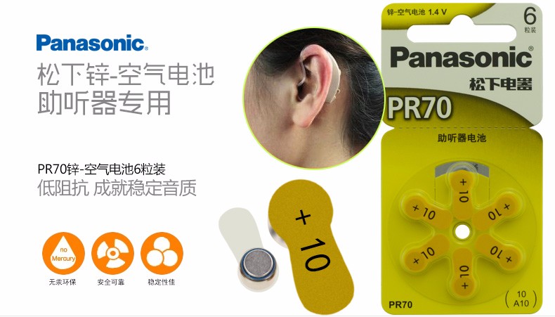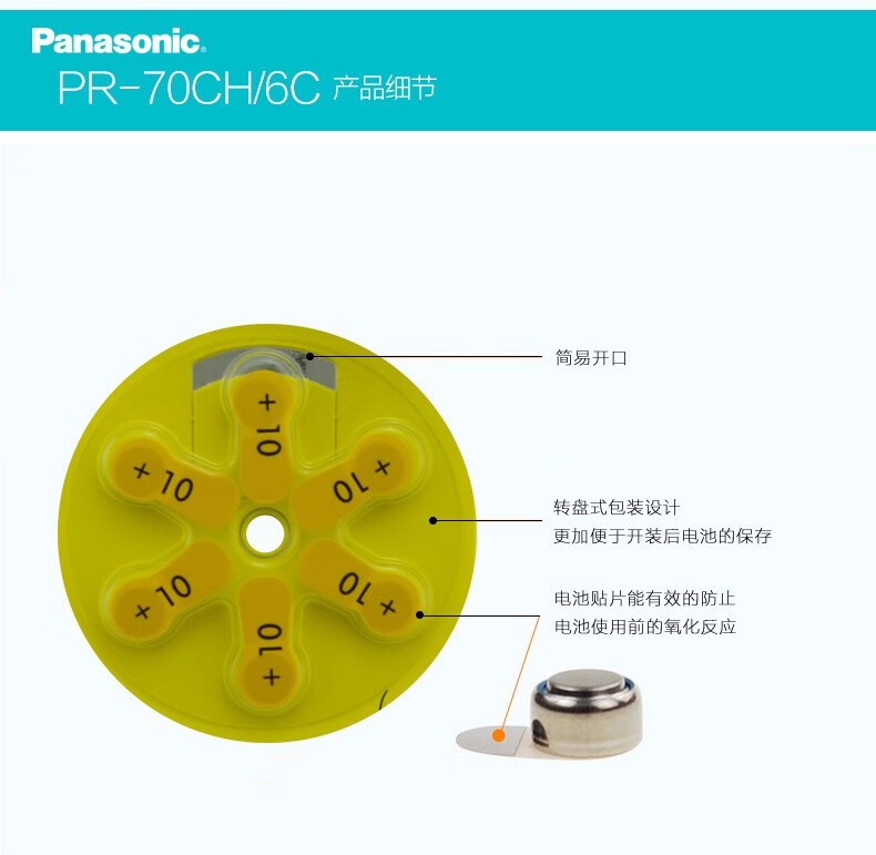 Panasonic PR70A10PR41CA312PR44A675PR48A13 hearing aid button battery 1.4V suitable for cochlear implants A10 (PR-70C) 60 capsules