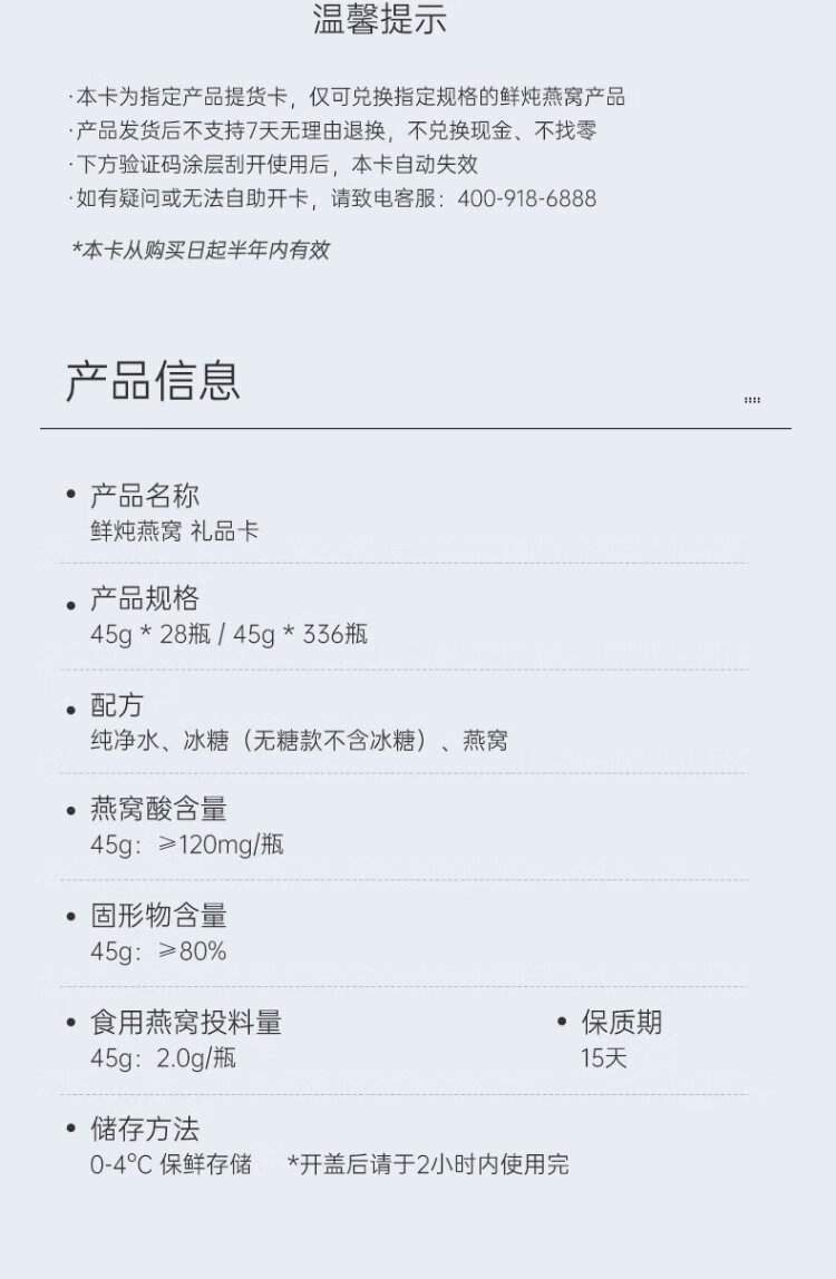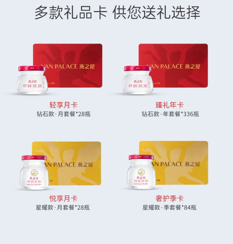 Yanzhiwu fresh stewed bird's nest gift card ready-to-eat bird's nest business gift 45g series gift card light raising monthly card 45g*28 bottles
