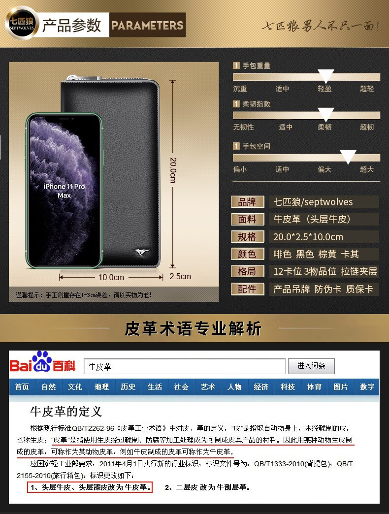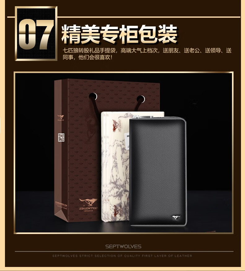Septwolves handbag men's wallet long cowhide clip card holder large capacity genuine leather business practical birthday gift for dad wise and elegant black with wrist strap