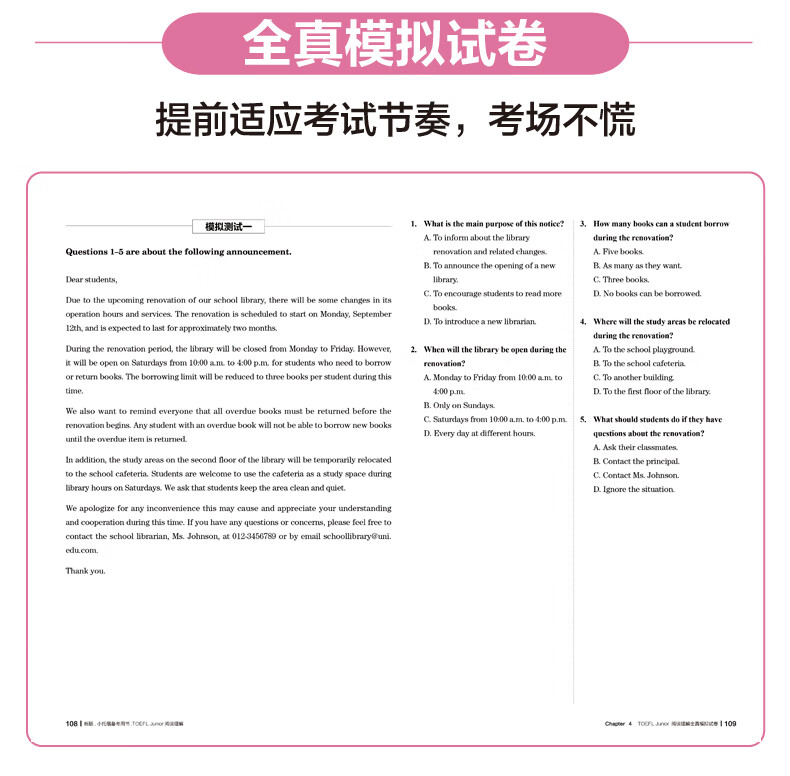 East China University of Science and Technology, 6 Bände, neue Version des TOEFL-Junior-Prüfungsvorbereitungsbuchs, Grundlagen der TOEFL-Junior-Grammatik, kostenloses Erklärungsvideo für Fremdlehrer + Grundlagen des Wortschatzes + Wortdiktierbuch + Zuhören + Sprachform und -bedeutung + umfassende Simulationsfragen, Vokabel- und Grammatiktestpunkte, spezielle Übungen, vollständige Simulation, Leseverständnis