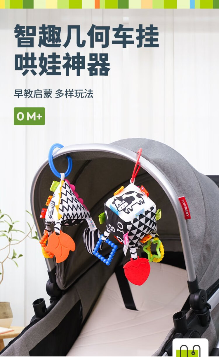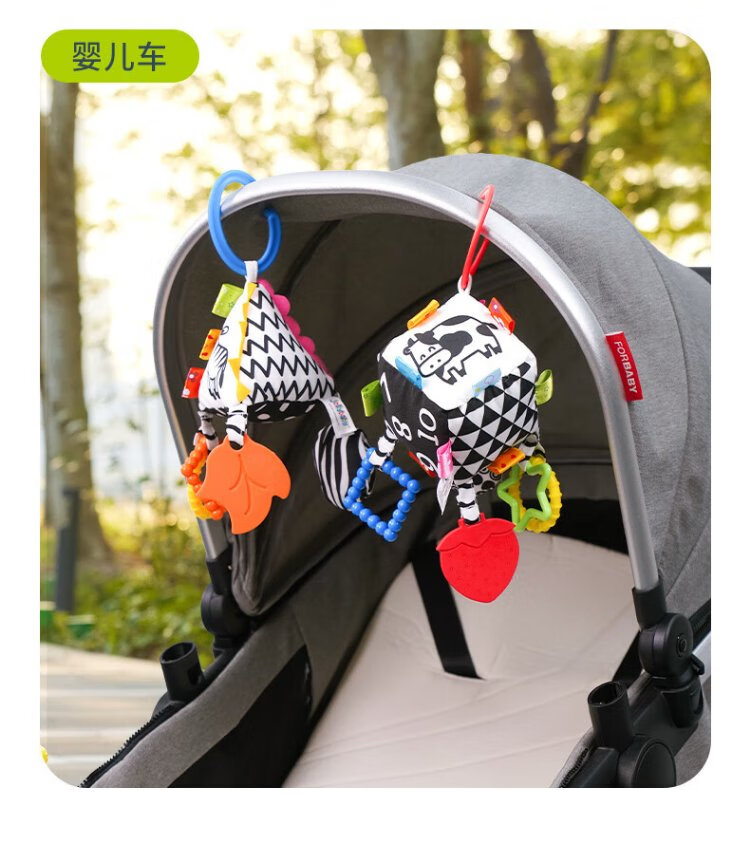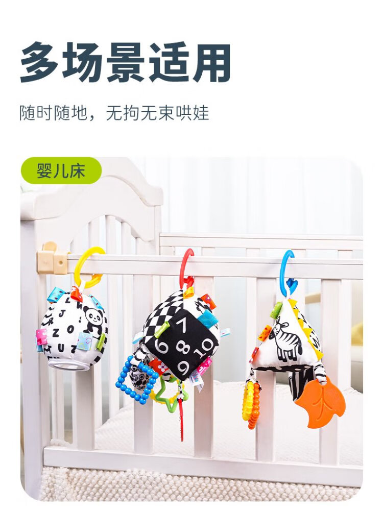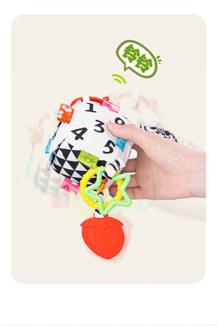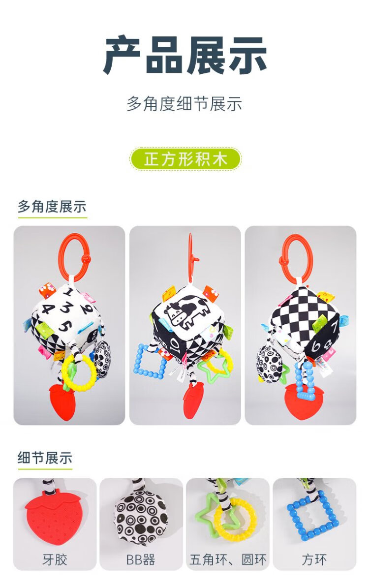 Jollybaby Bettglocke, Anhänger für Neugeborene, Kinderwagen, Babybett, Rassel, beruhigendes Hängespielzeug, 0–1 Jahre alt, quadratischer Anhänger