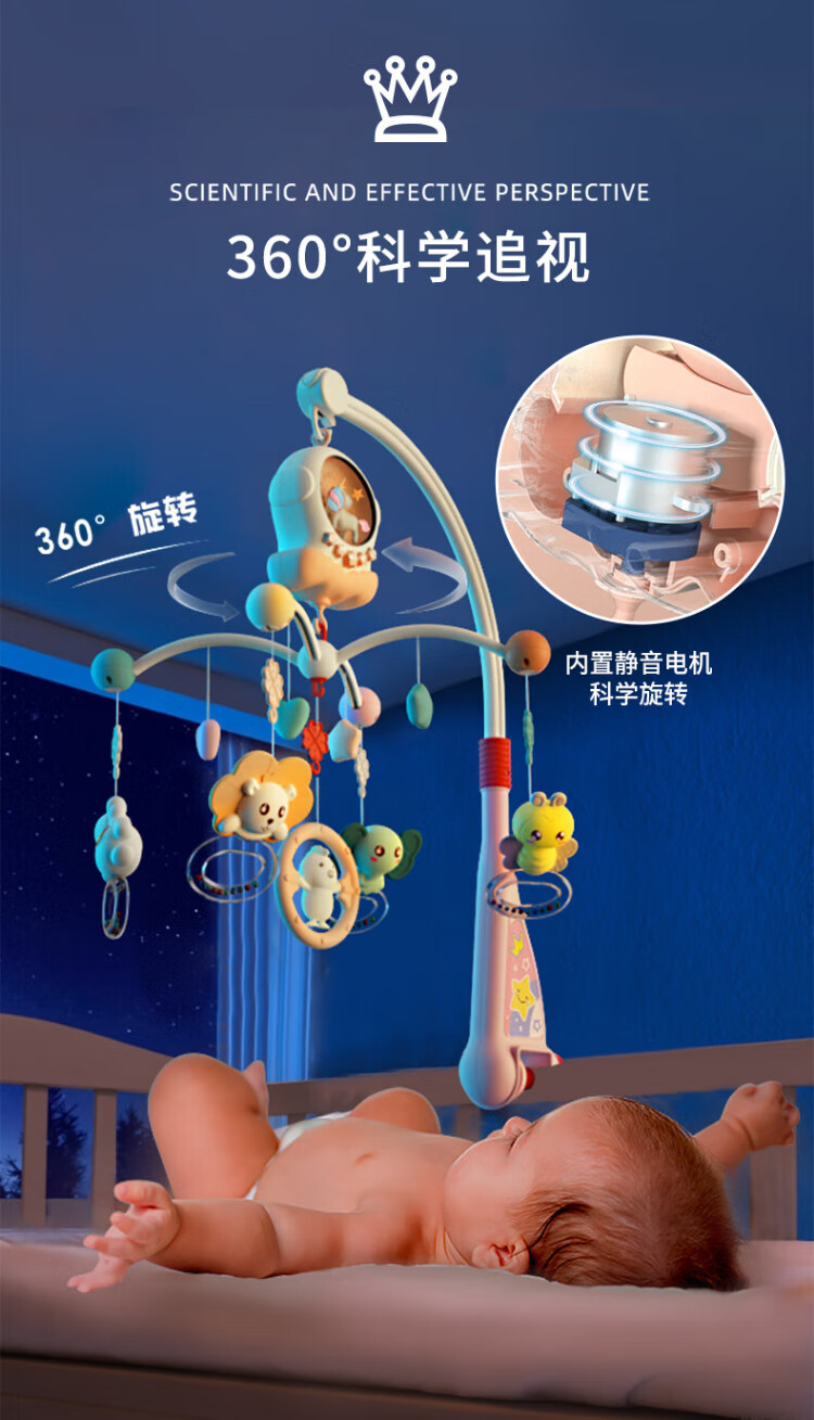 Royal newborn baby 0-6 months electric rotatable bed bell stroller pendant bedside rotating rattle toy 1 year old