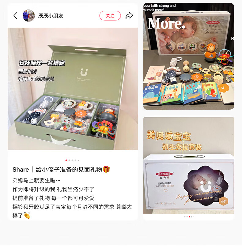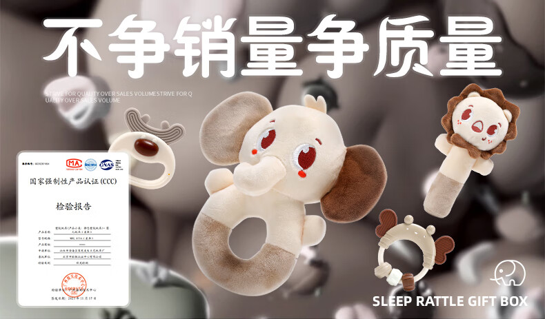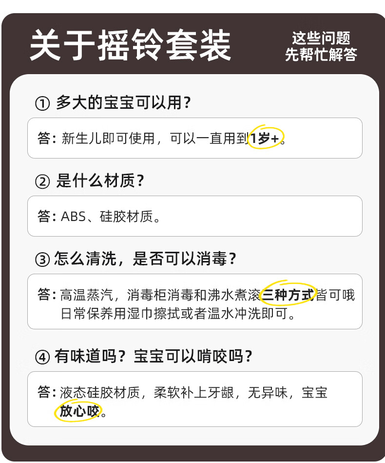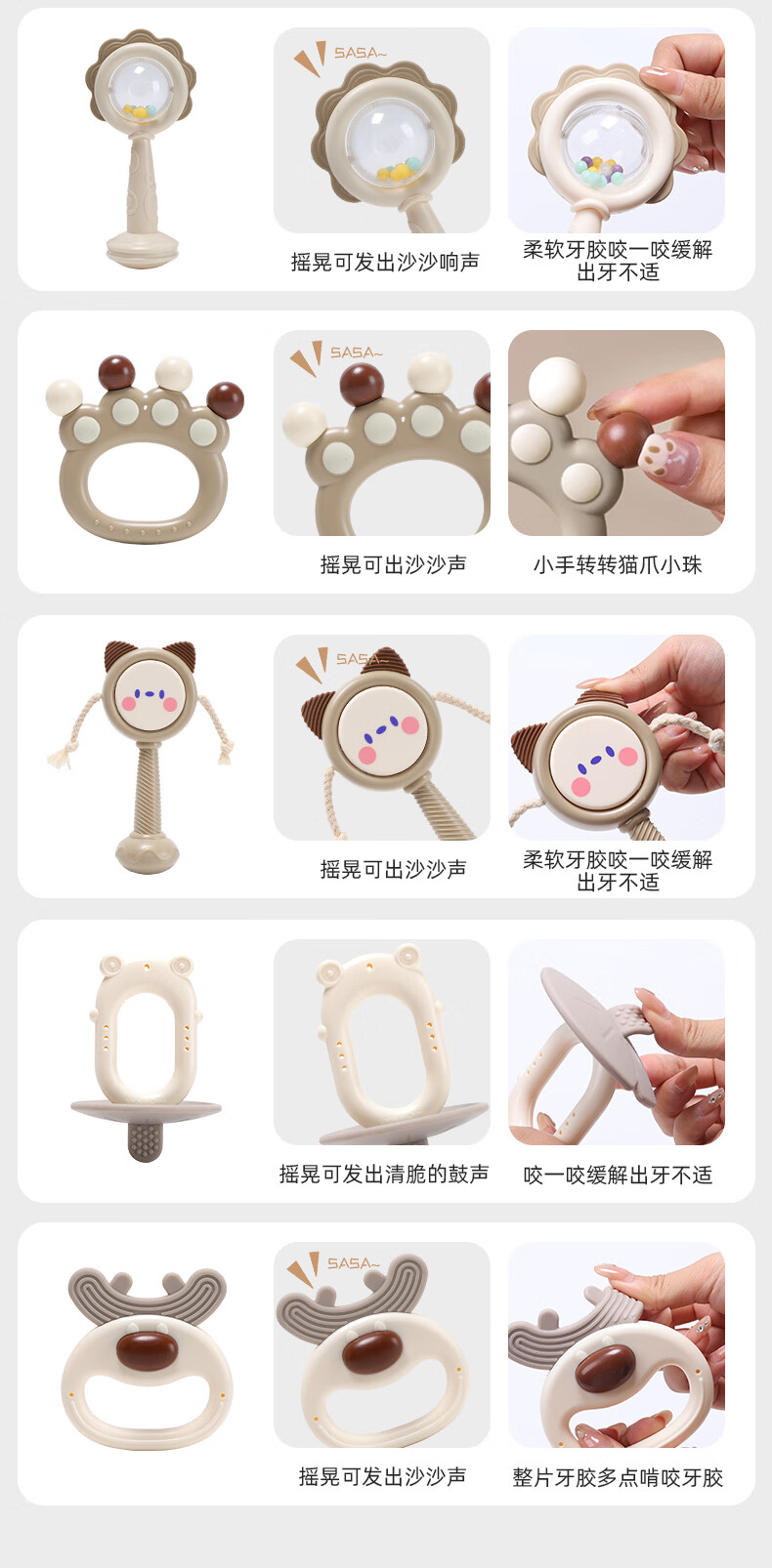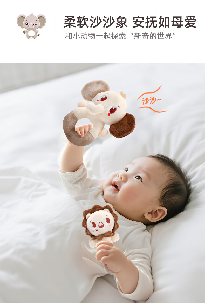 Cute Stone Babyspielzeug, 0–1 Jahre alt, Handrassel, Neugeborenenbiss, beruhigend, hochwertige Geschenkbox, Einjähriges Geschenk, Vollmond, 0–6 Monate, Rassel, 10-teiliges Set, Geschenkbox + visuelle Stimulationskarte, gemeinsam hergestellt von Maybelle und Cute Stone