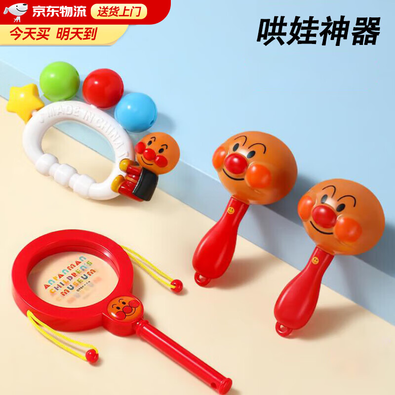 Microboat Anpanman Handrassel 0–3 Jahre alt, Früherziehung, Sandhammer, Baby-Beruhigungsspielzeug, Rassel, Neugeborene können in die Hand beißen, 2 Sandhämmer + Rassel + Rassel, um die Wahrnehmung, Hörentwicklung, Greiffähigkeit zu verbessern