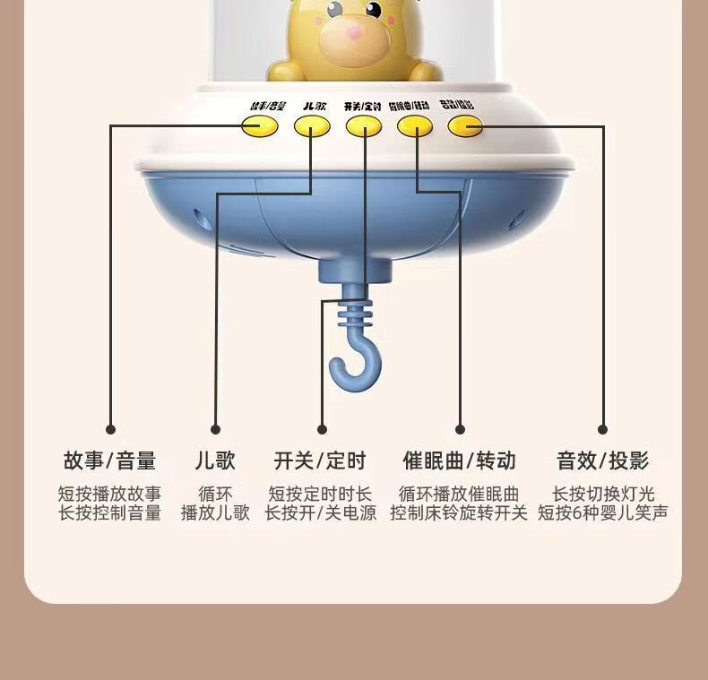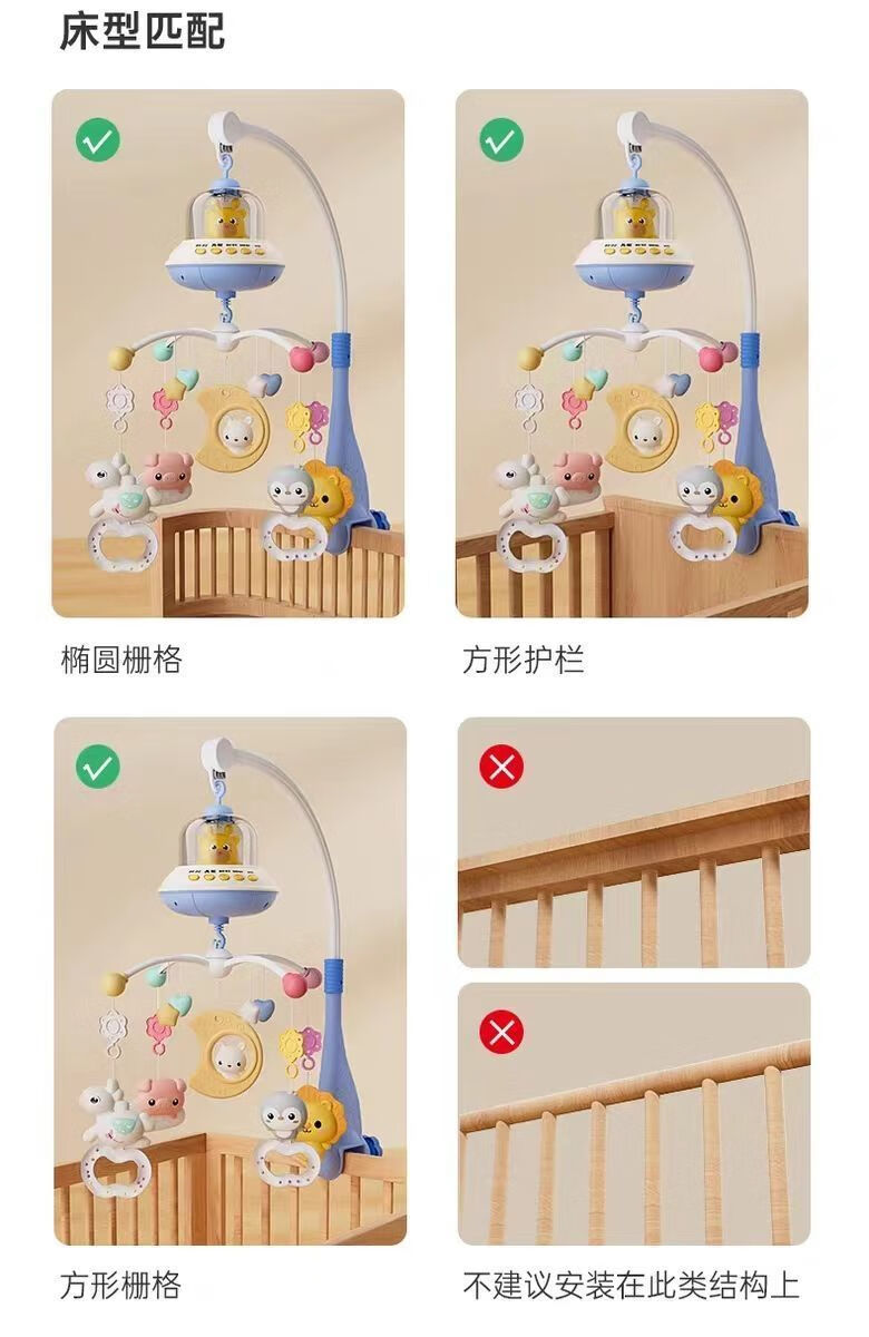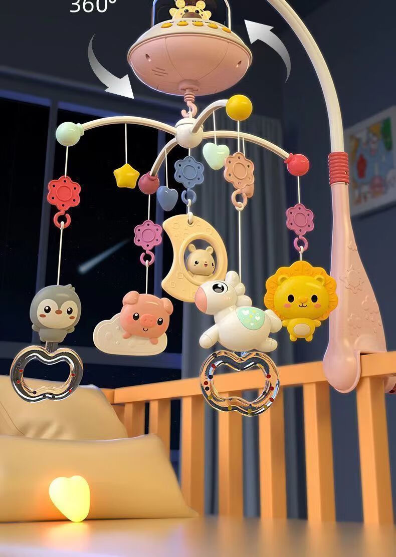 Manding Bär Bettglocke, Babyspielzeug, 0–1 Jahre alt, Neugeborene, Nachttischmusik, Baby-Früherziehung, 3–6–12 Monate, wiederaufladbar, rotierende Rassel, statische Version, keine Musikfunktion, Rosa mit Gewöhnlichem