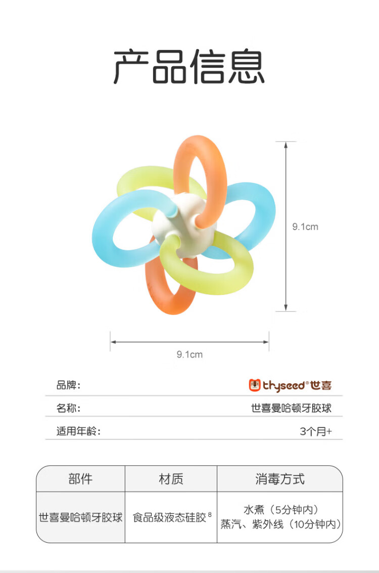 Shixi Manhattan hand-grabbing ball teether baby toy oral period 0-3-6 months can chew food-grade grip training