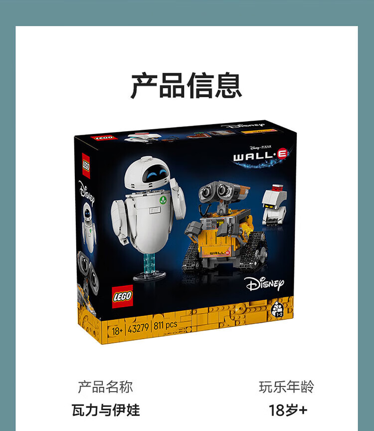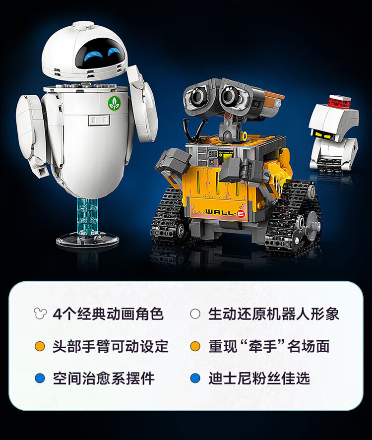LEGO-Bausteinmontage Disney 43279 Wall-E- und Eva-Roboterspielzeug als Geburtstagsgeschenk für Jungen und Mädchen