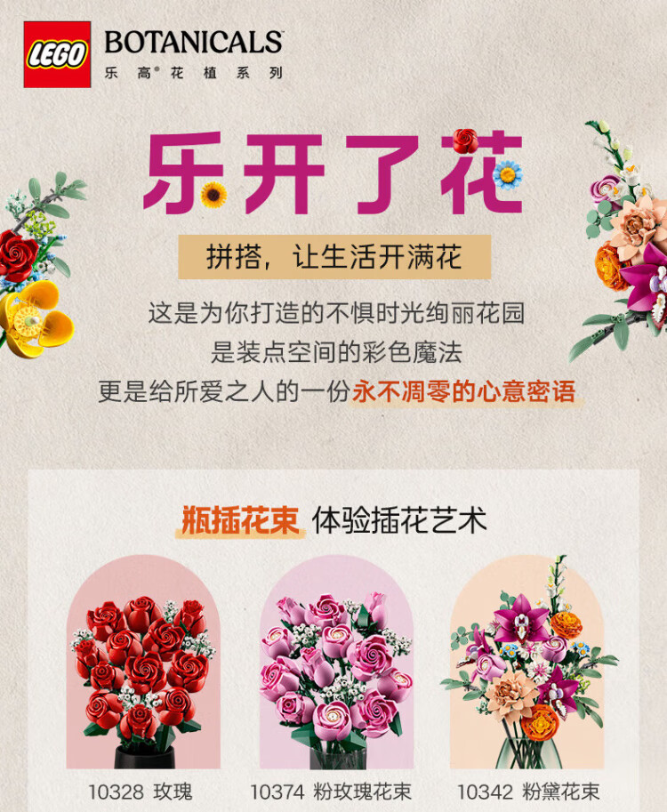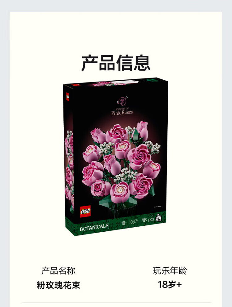 LEGO Baustein 10374 Rosa Rosenstrauß Jungen und Mädchen Kinderspielzeug Geburtstagsgeschenk