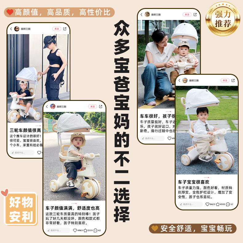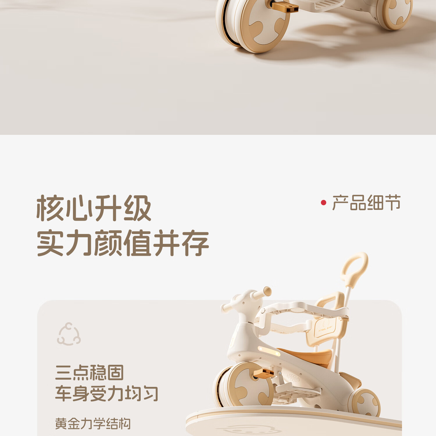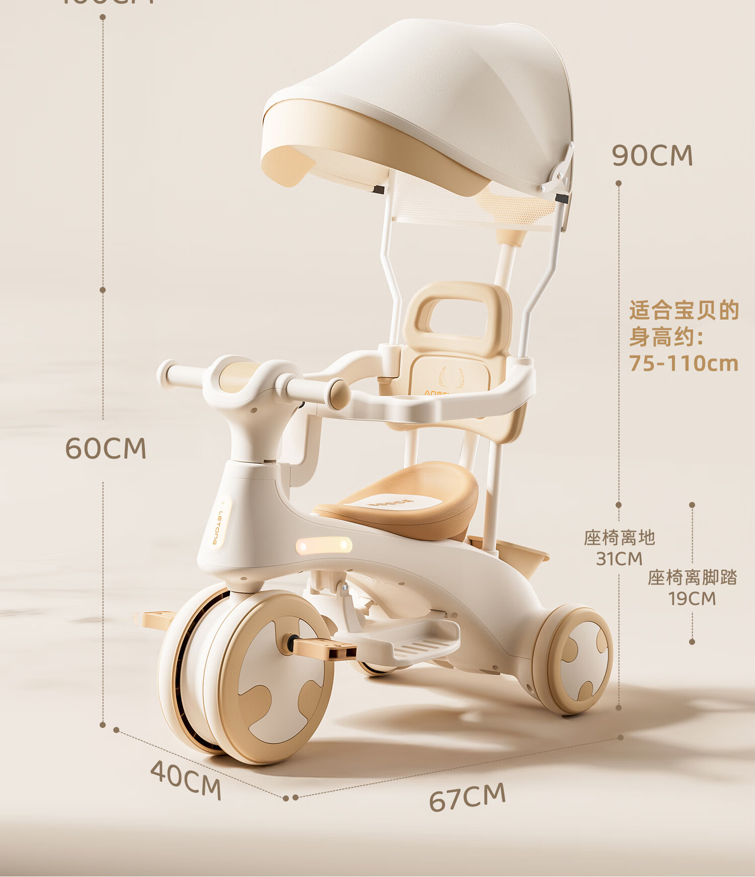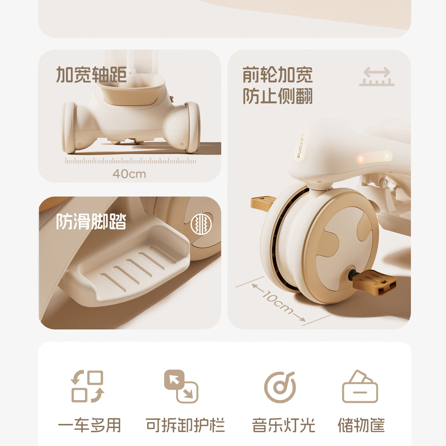 Beiq Kinderdreirad Baby 0-1-3 Jahre alt Baby Kinderwagen Kinderwagen Kinderwagen Artefakt 1. Geburtstagsgeschenk Top Zubehör | Leichte Musik + Leitplanke + Lenkschubstange + Deckenleuchte Fahrrad für Kinder zum Ausgehen