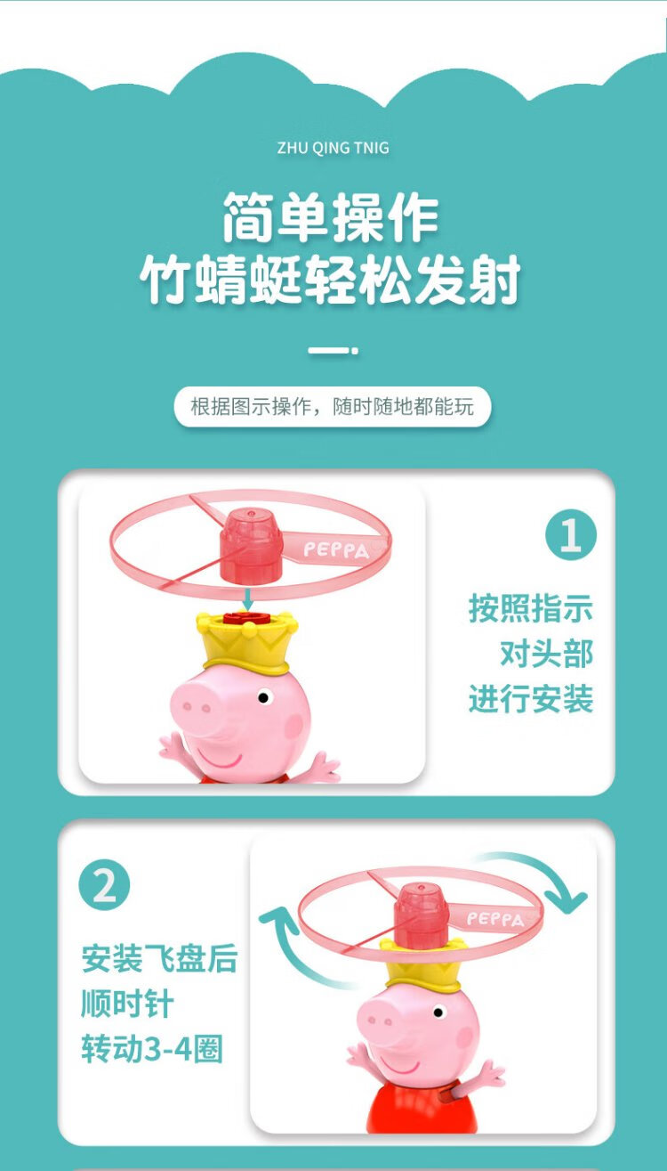Haha Ball Piggy Peppa Pig Kinder-Spielzeug für draußen, Frisbee, fliegende Untertasse, Bambus-Libelle, Kreisel, Geburtstags- und Urlaubsgeschenk