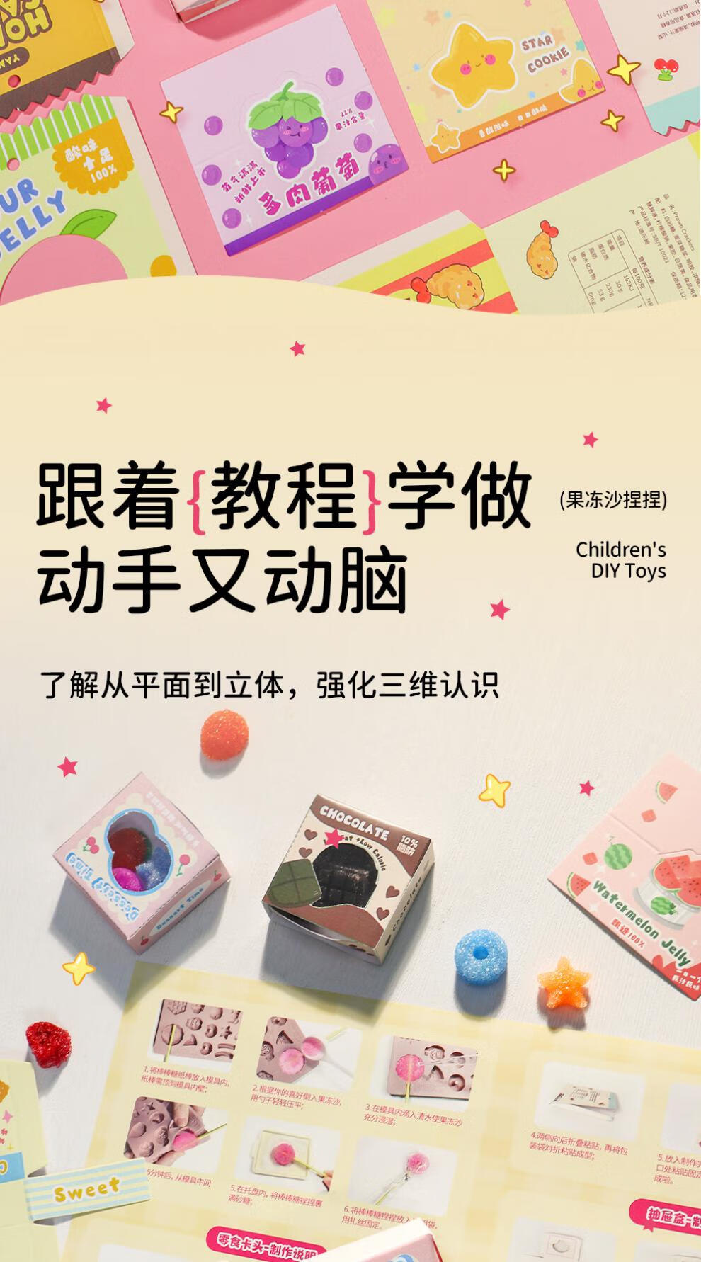 Kinder handgemachte DIY hausgemachte Süßigkeiten Essen spielen Gelee Sand Mini Simulation Snack Material Paket Mädchen Miniaturspielzeug 6 Gelee Sand Essen spielen Prise Spaß