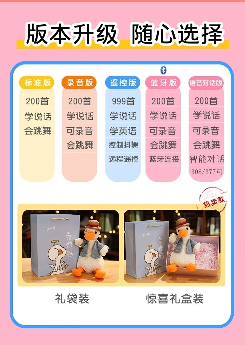 Go Go Duck Internet-Berühmtheit Sandskulptur Wiederholung Ente Talk Back Puppe Sprechen lernen Go Go Doll Geburtstagsgeschenk Kinderspielzeug, Ohrfeige und um Gnade betteln, 377 Passwort Lied/Doktrin, gewöhnlicher Stil