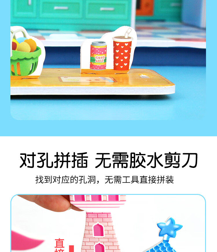 Schönes Zuhause, dreidimensionales Puzzle, 3D-Kinderspielzeug, zusammengebautes Zimmer, Hütte, DIY, handgefertigt, Junge und Mädchen, Früherziehung, klebstofffrei (mittlere Größe), Strand am Meer