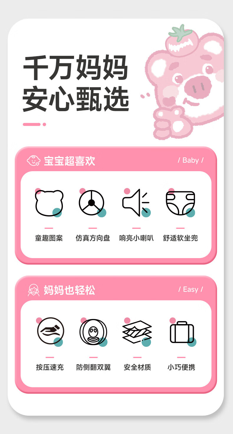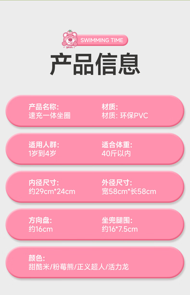 Waicai Baby-Schwimmring, Baby-aufblasbarer Schwimmring, verdicktes PVC-Wasserspielspielzeug, drücken Sie aufblasbaren Schwimmring, Achselhöhlenring, Sitzring, Einheitsgröße, Pinkberry Bear