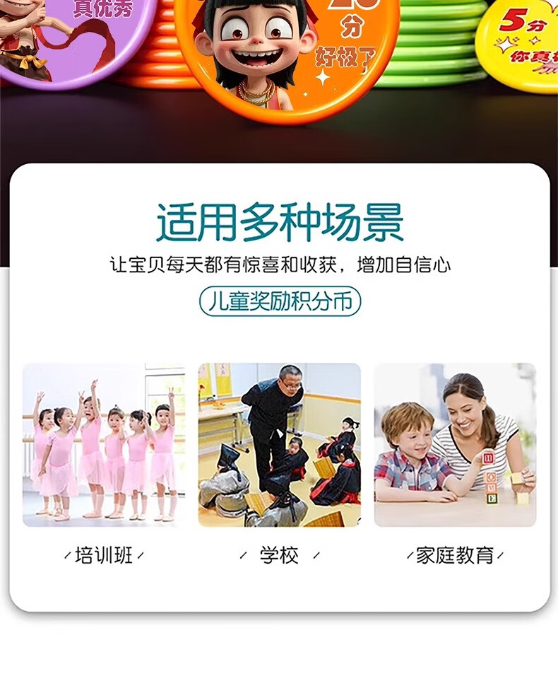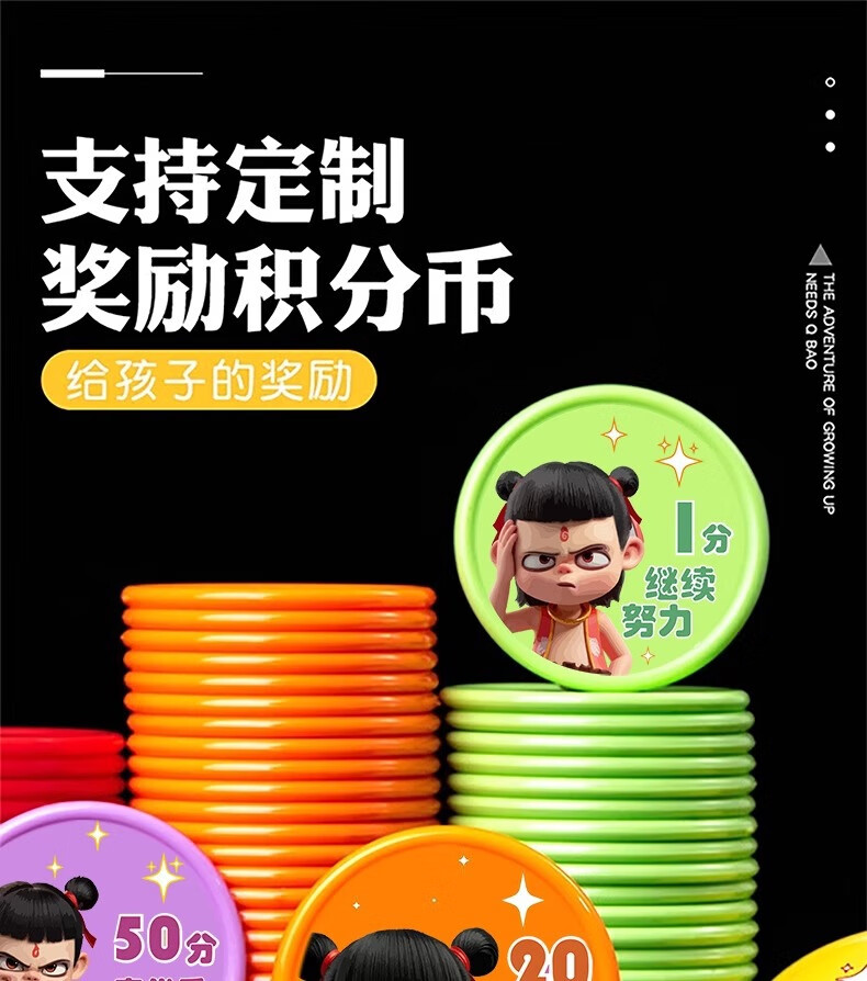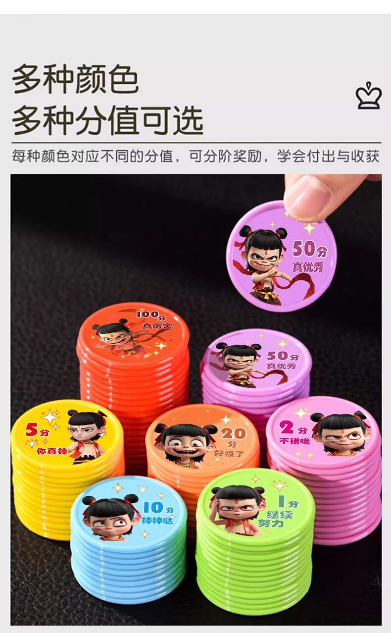 He Jiagong Kinder-Punktmünze, Familientraining, Klasse, Schule, Belohnung, Magic Boy Naohai, Kunststoff, waschbar, einlösbar, Lernmünze, Magic Boy Naohai, kleine Punkte im Wert von 100 Stück, kostenlose Aufbewahrungsbox