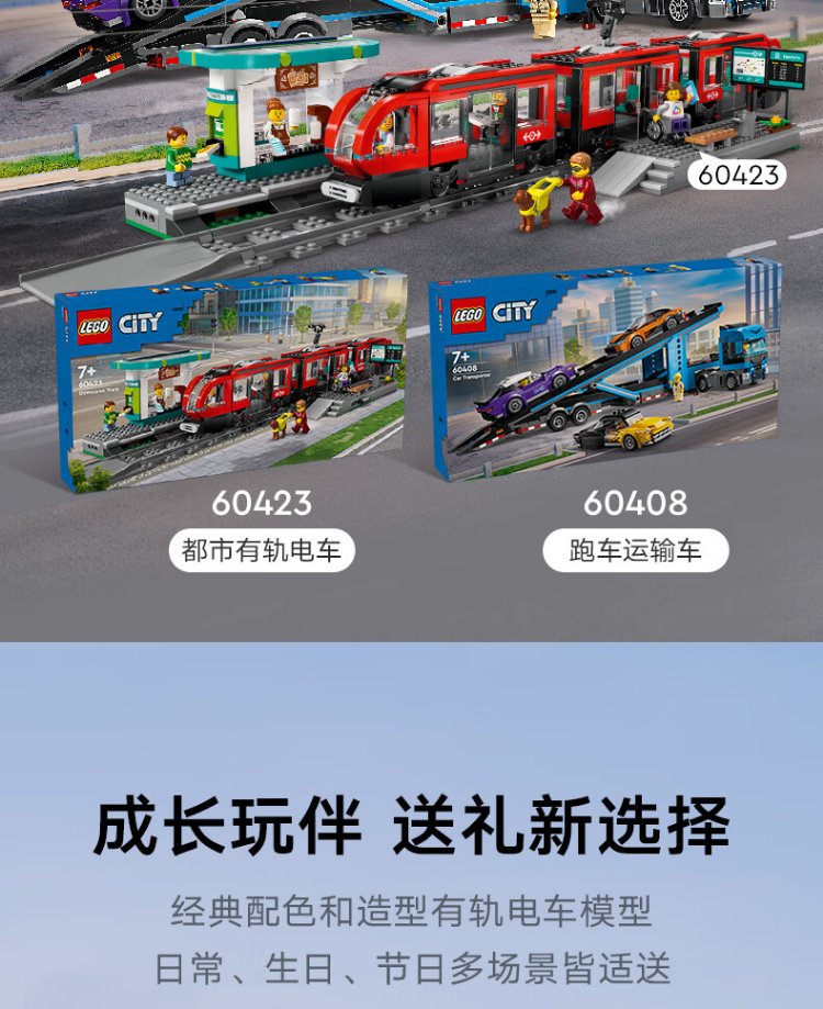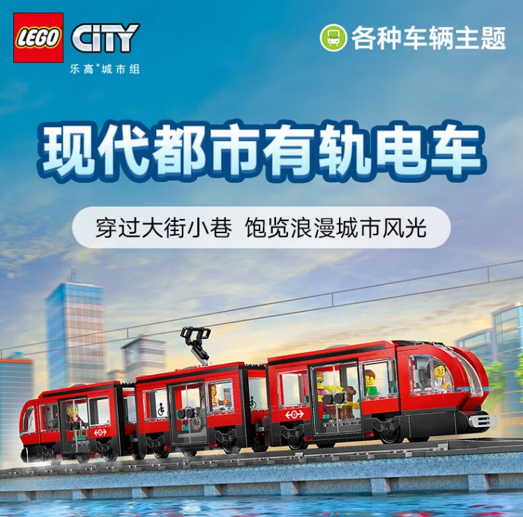 乐高(LEGO)积木拼装城市系列60423 都市有轨电车男孩儿童玩具生日礼物