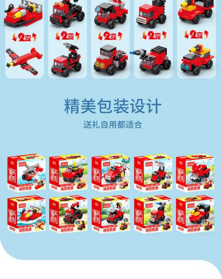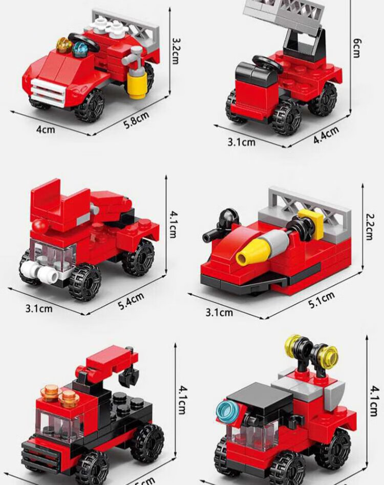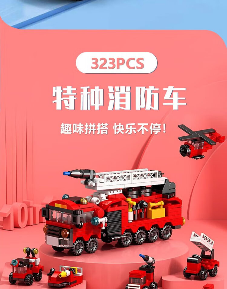 Baili Shuang Feuerwehrauto, 10-in-1-Bausteine, kleine Partikel, Jungenauto, Montagespielzeug, Kinderheimdekoration, Geburtstagsgeschenk