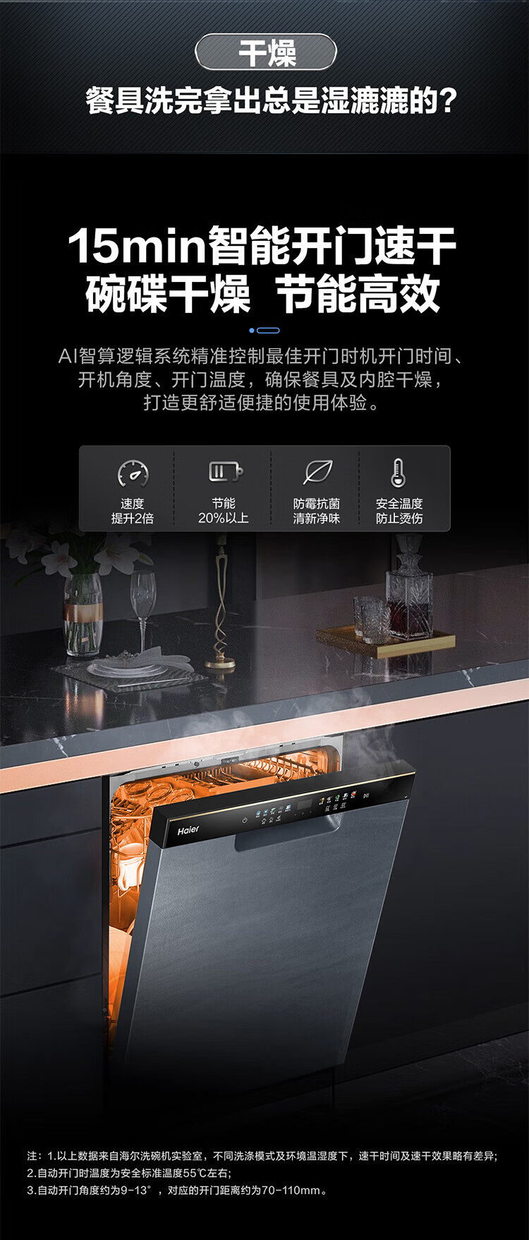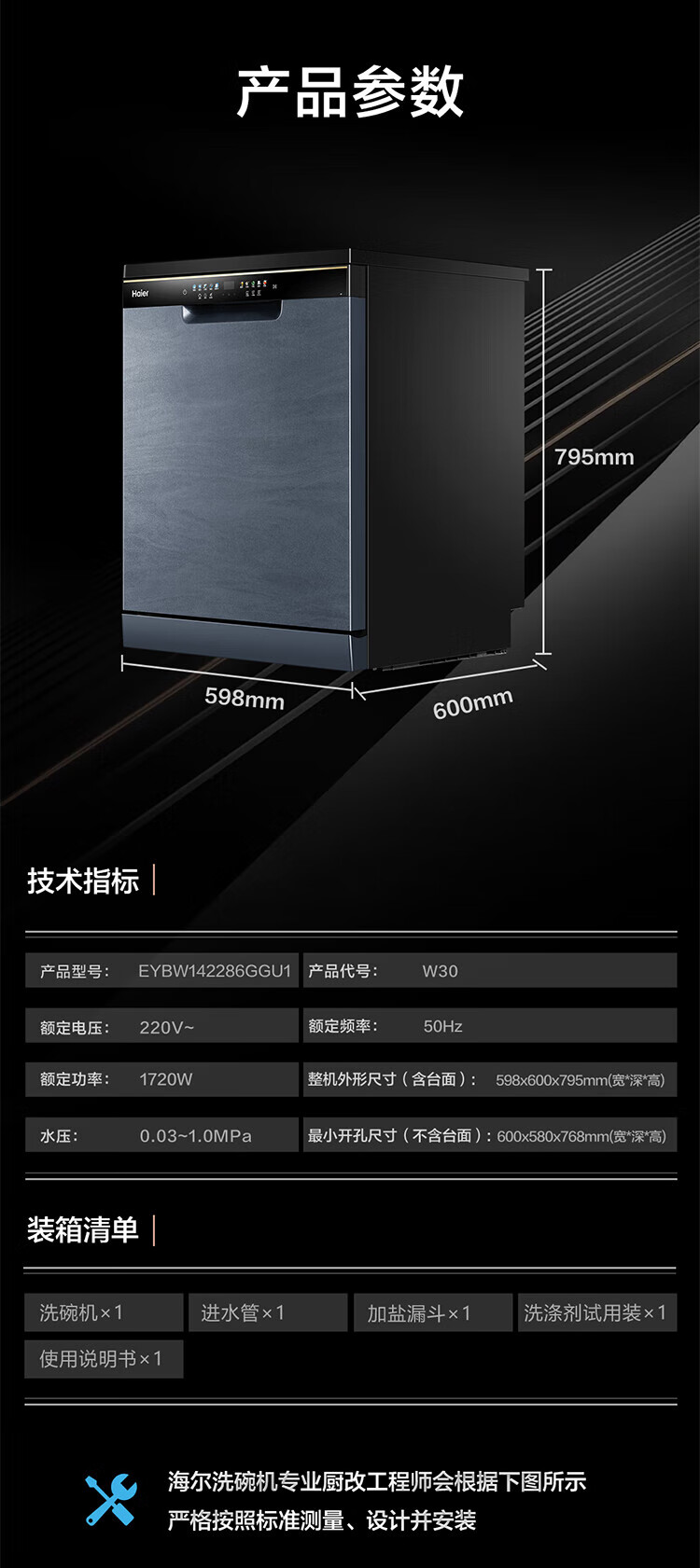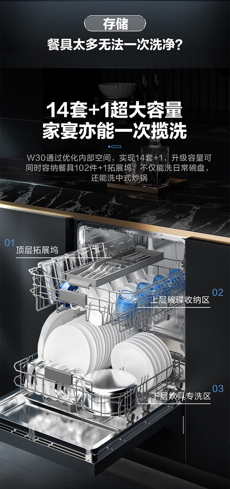 Haier Dual Micro Steam Washer W30 National Subsidy 20% Independently Installed Dishwasher 14 Sets Large Capacity First-Class Water Efficiency Intelligent Door Opening and Quick Drying EYBW142286GGU1