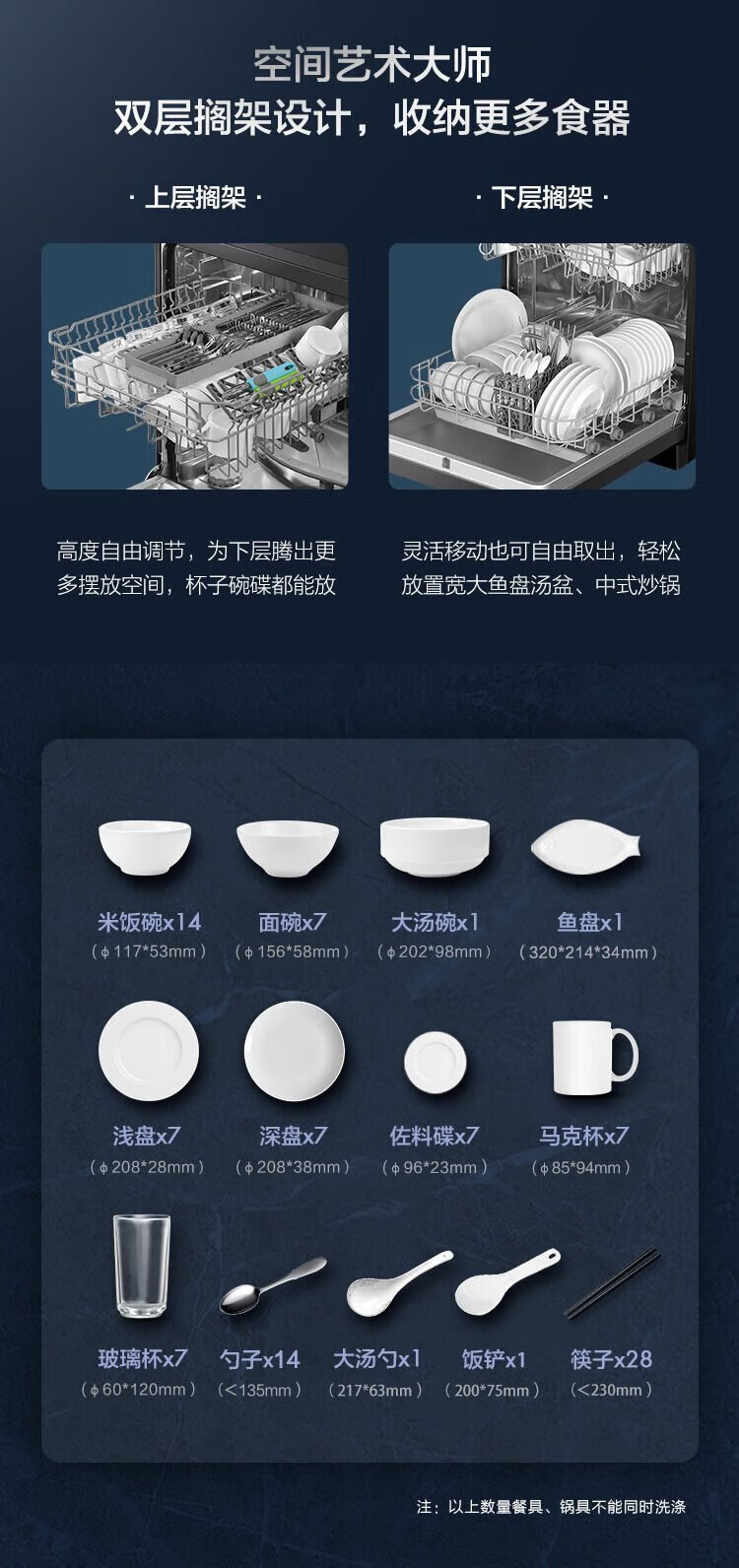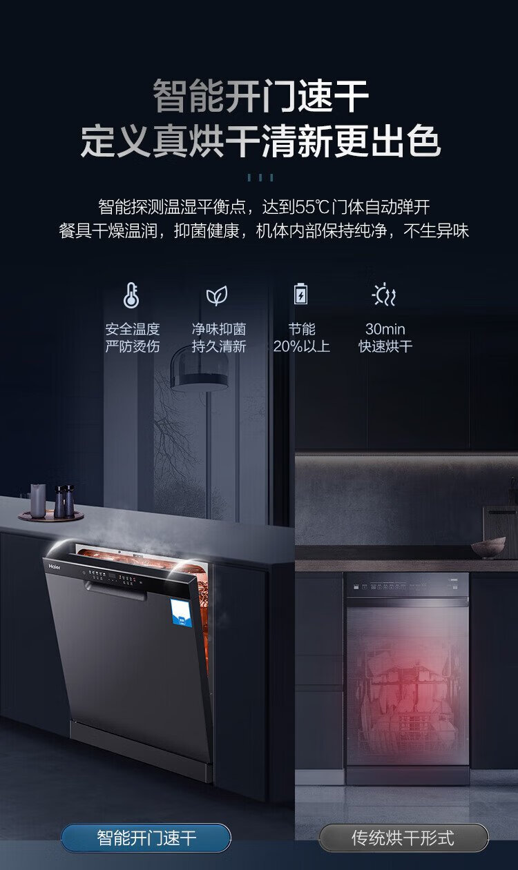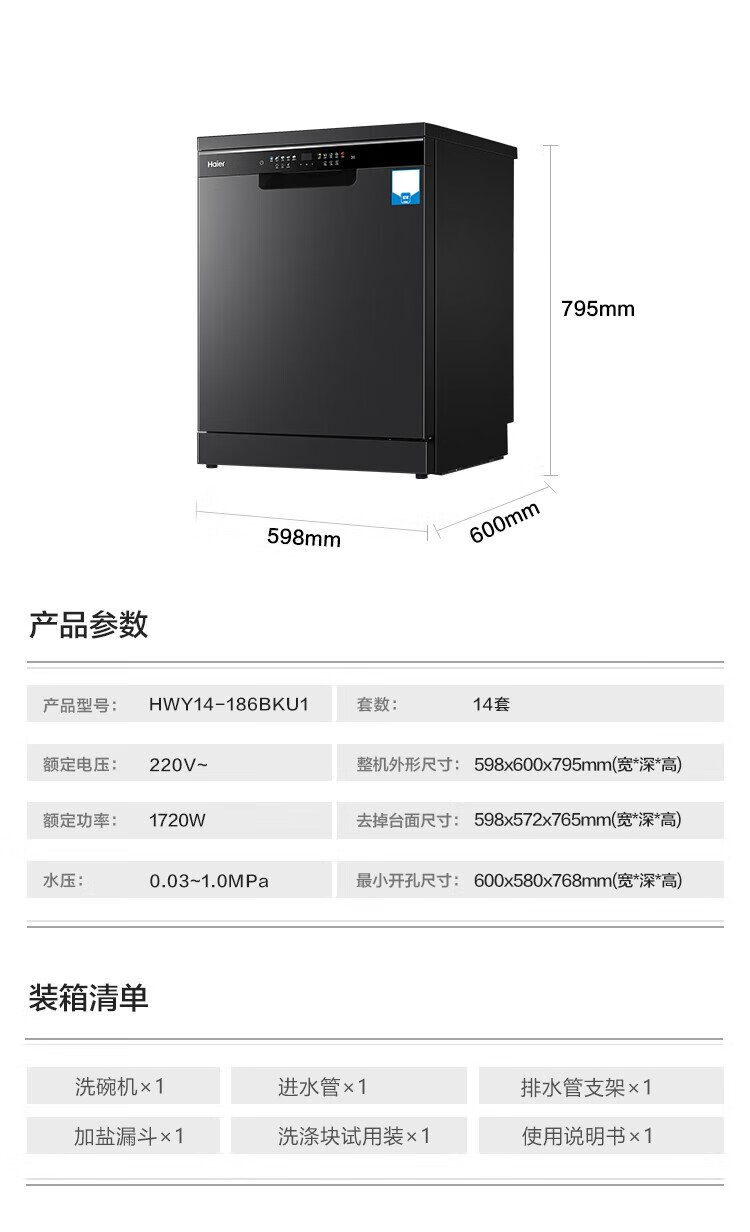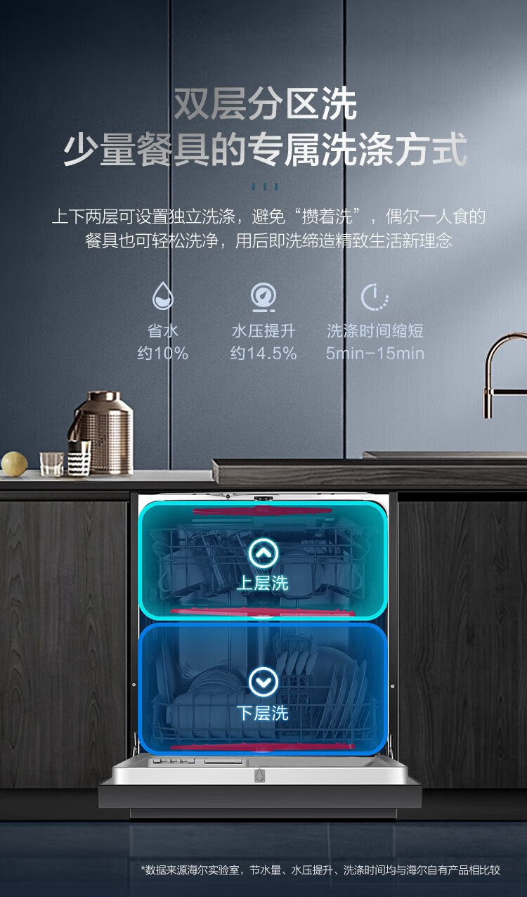 Haier dishwasher, national supplement, double-sided washing new product, 16 sets, large capacity, high water pressure Yunxi 396, double ultra-clean UV sterilization, built-in dishwasher, adjustable basket