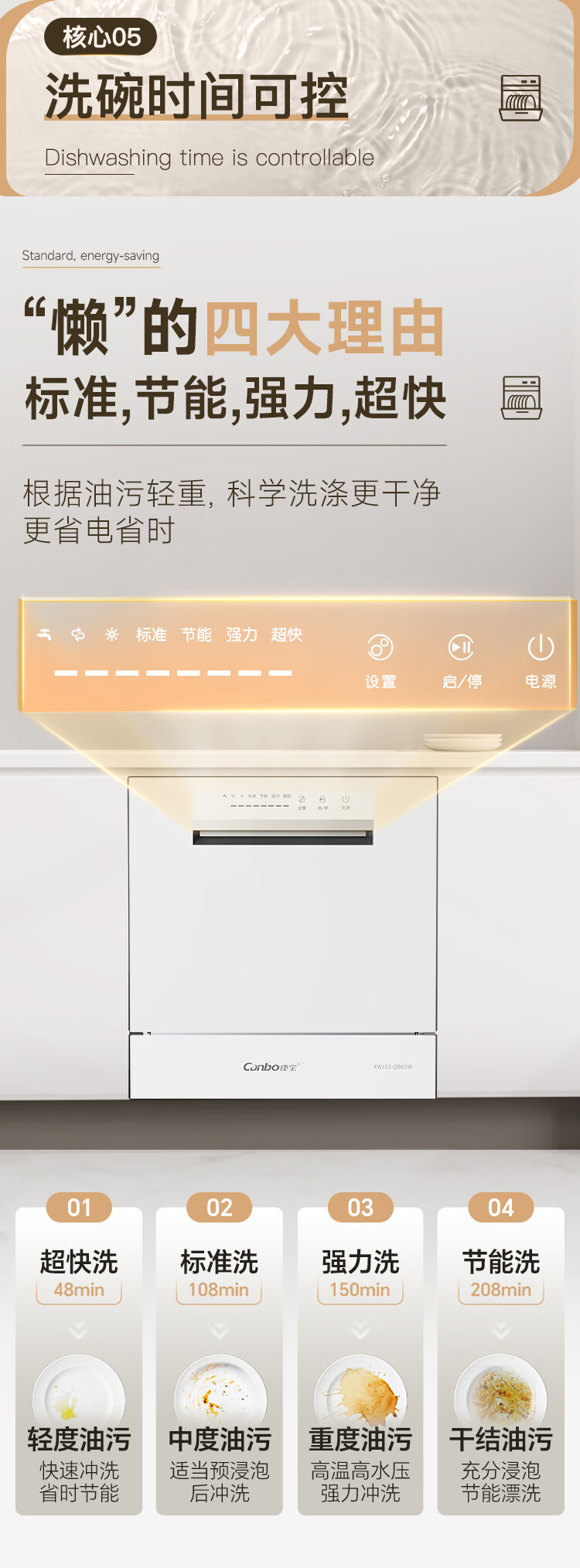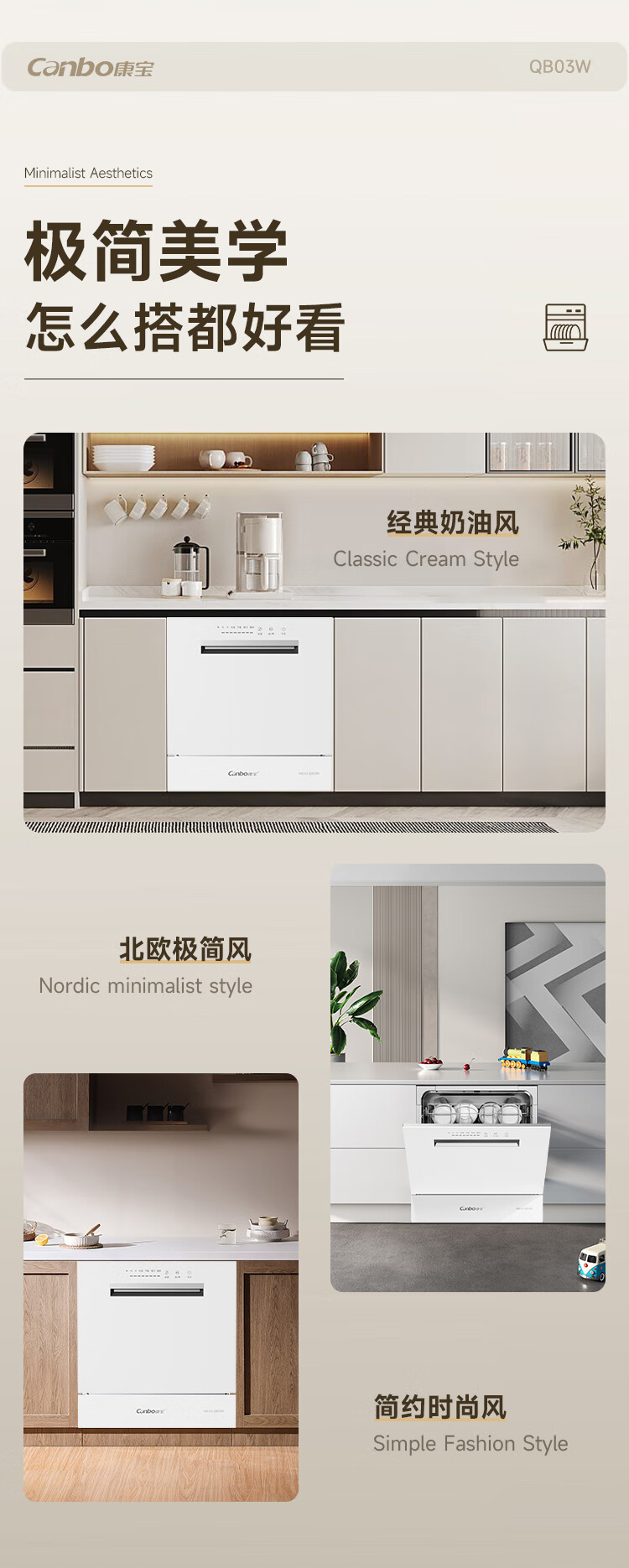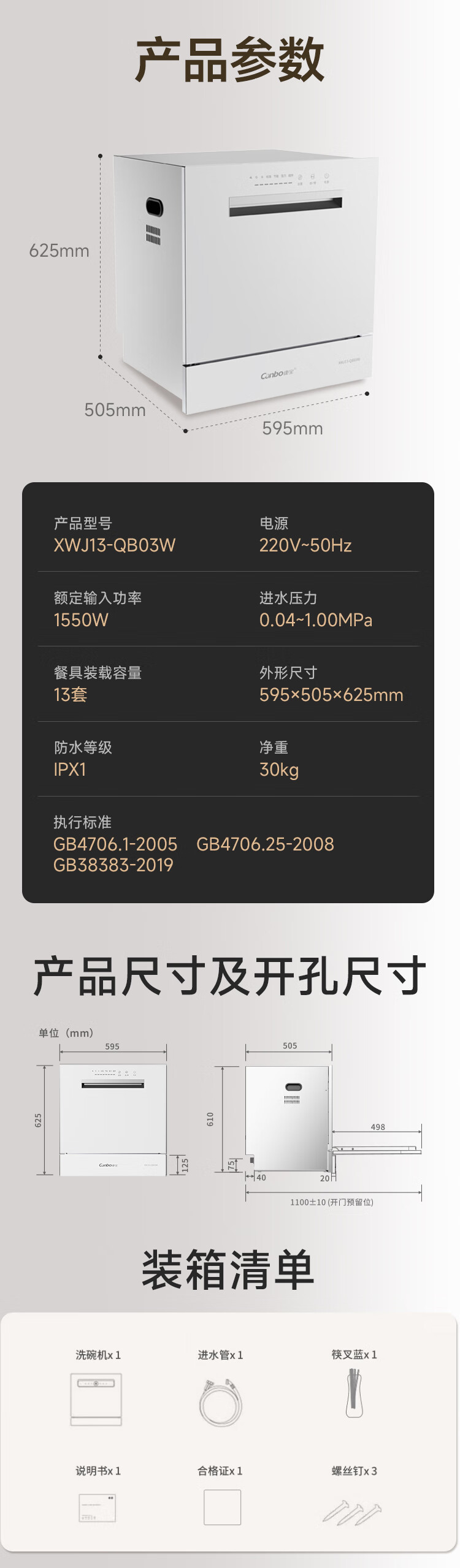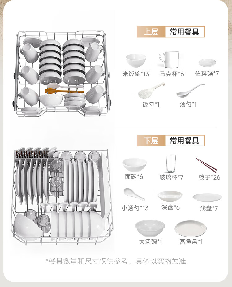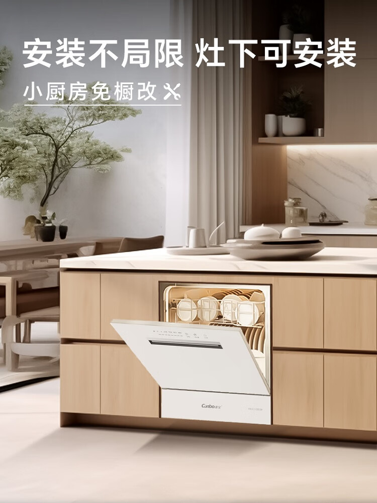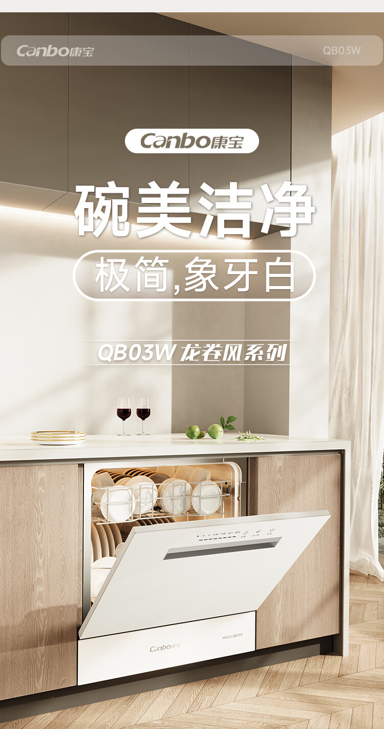 Canbo Dolphin dishwasher large capacity embedded under the stove 13 sets of household disinfection and drying all-in-one machine First-class water efficiency independent 304 stainless steel XWJ13-QB03W ivory white