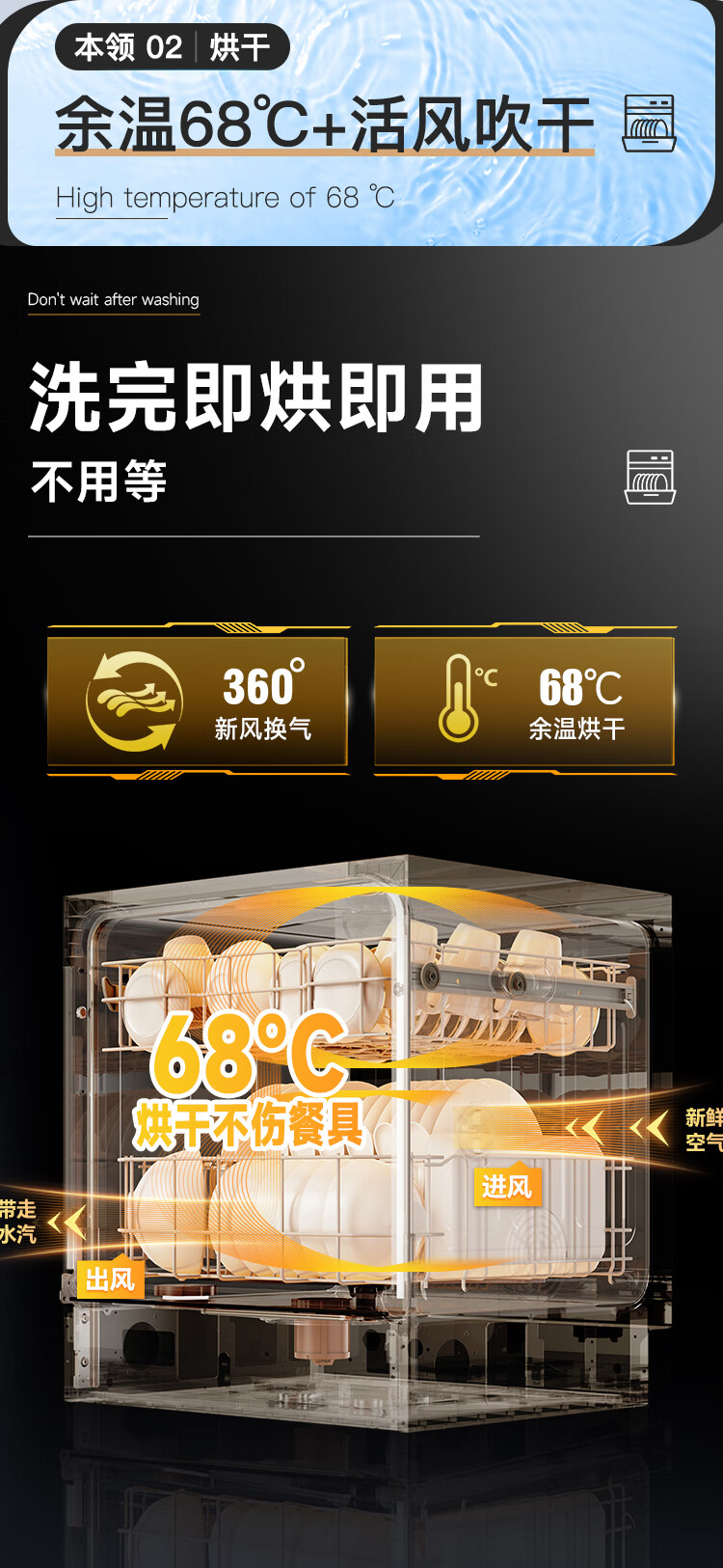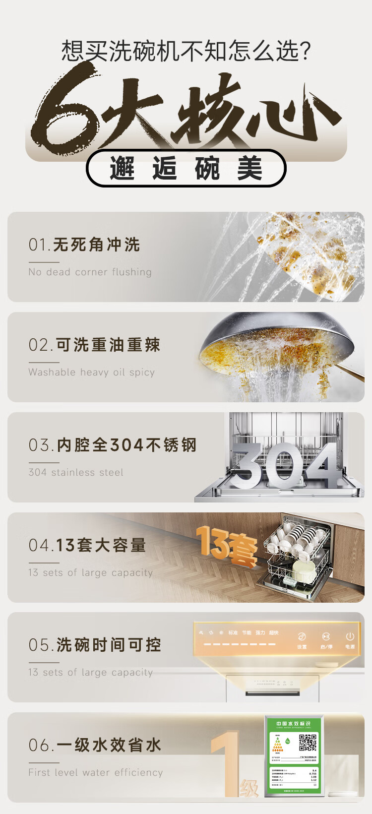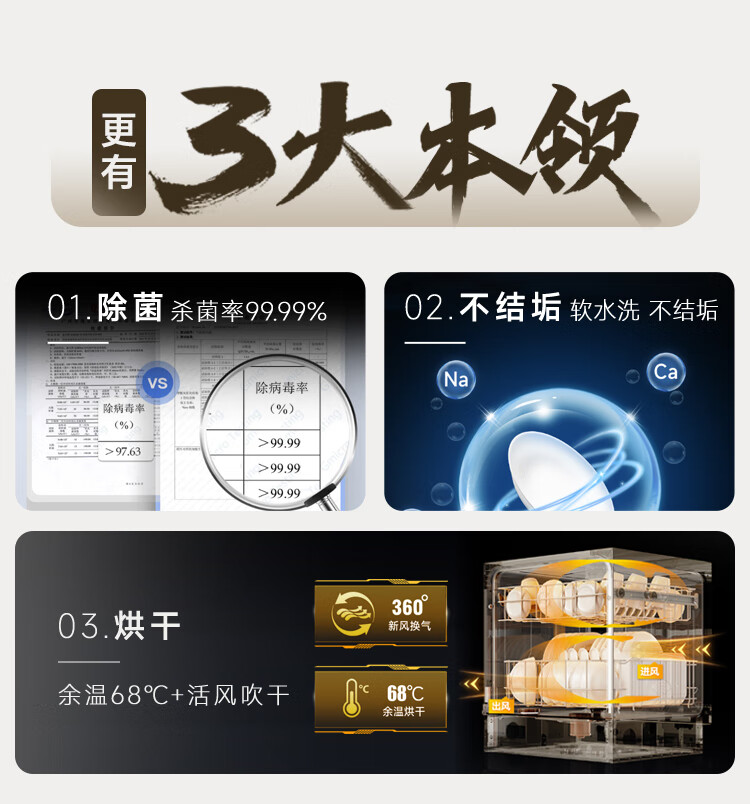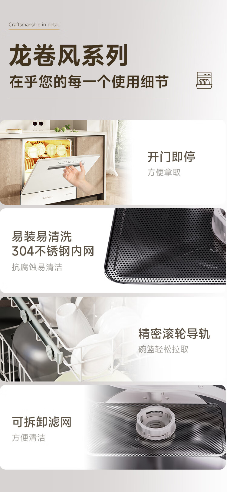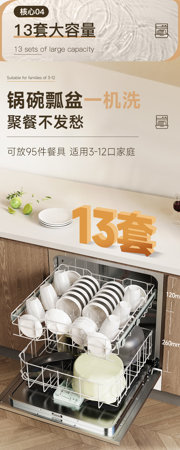 Canbo Dolphin dishwasher large capacity embedded under the stove 13 sets of household disinfection and drying all-in-one machine First-class water efficiency independent 304 stainless steel XWJ13-QB03W ivory white