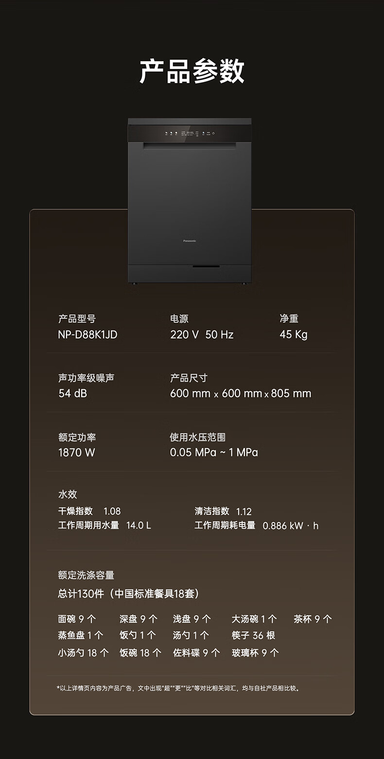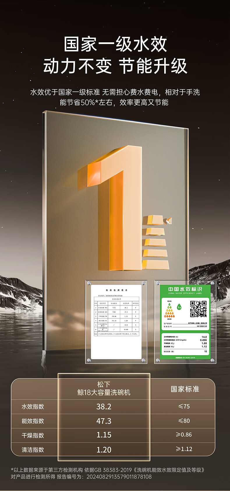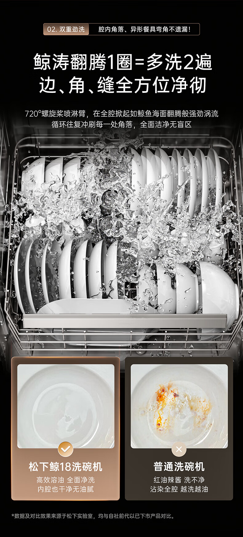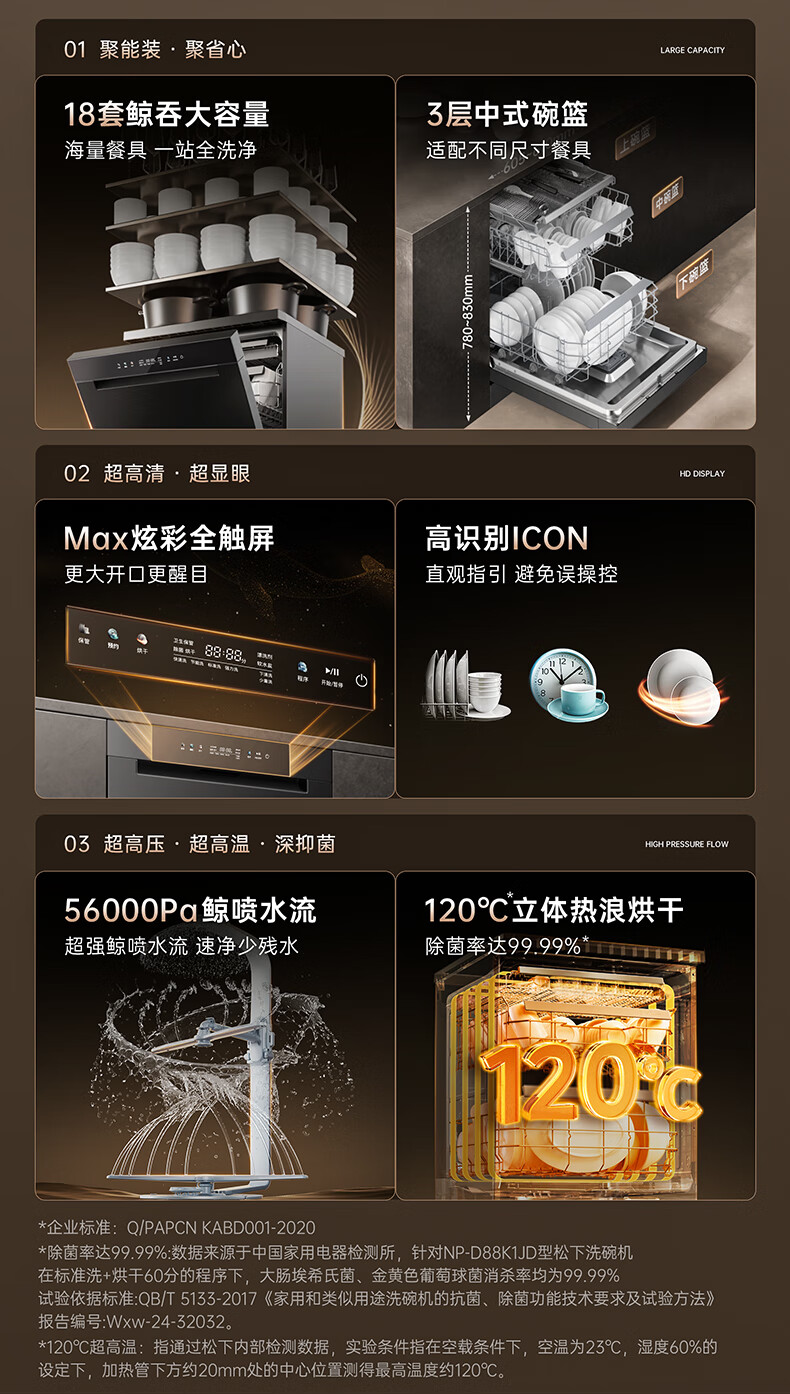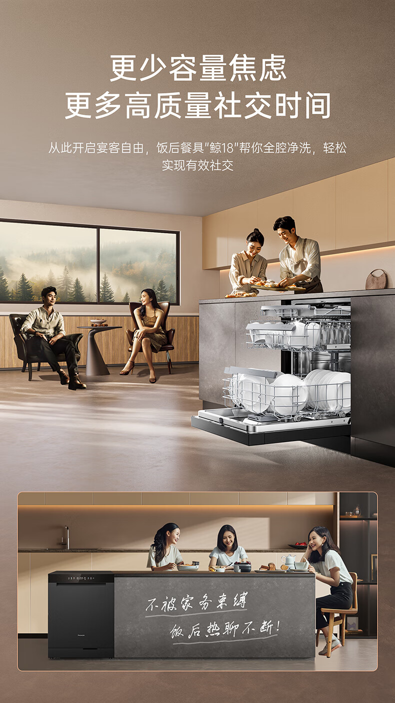 Panasonic Whale 18 sets of built-in dishwasher, three-layer basket, 18 sets of high-temperature drying, 56000 Pa frequency conversion washing, first-class water efficiency, sterilization and cleaning, integrated dual-use 1JD
