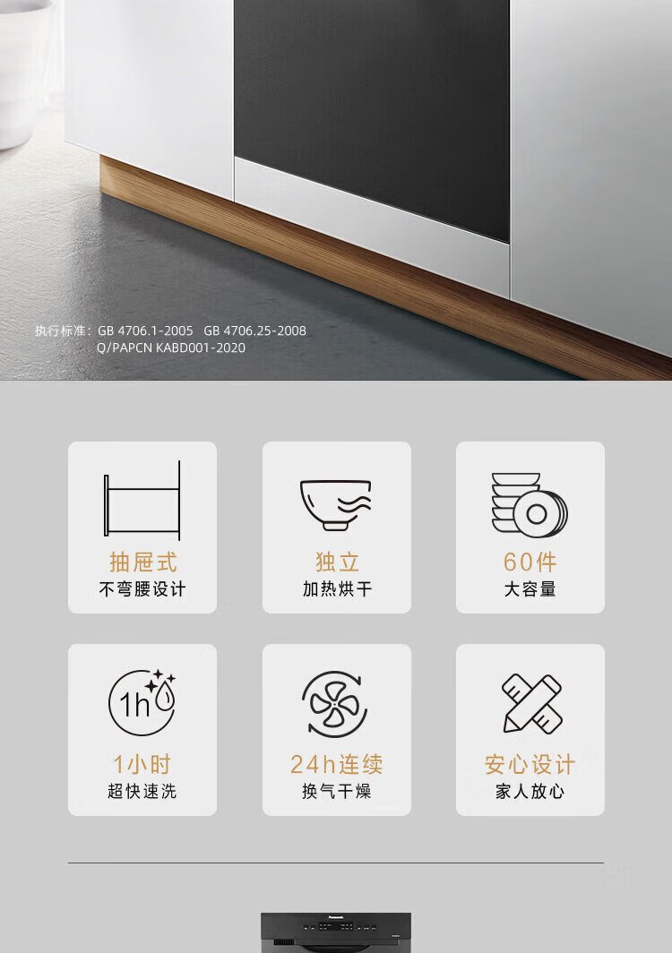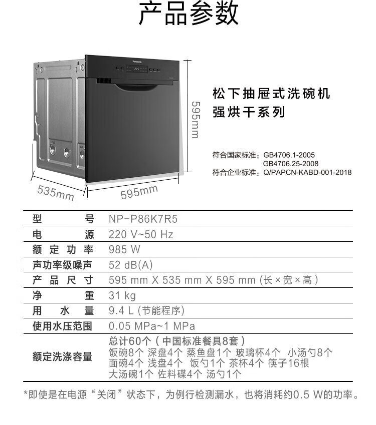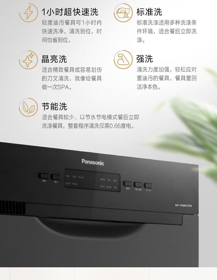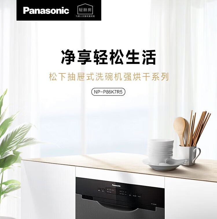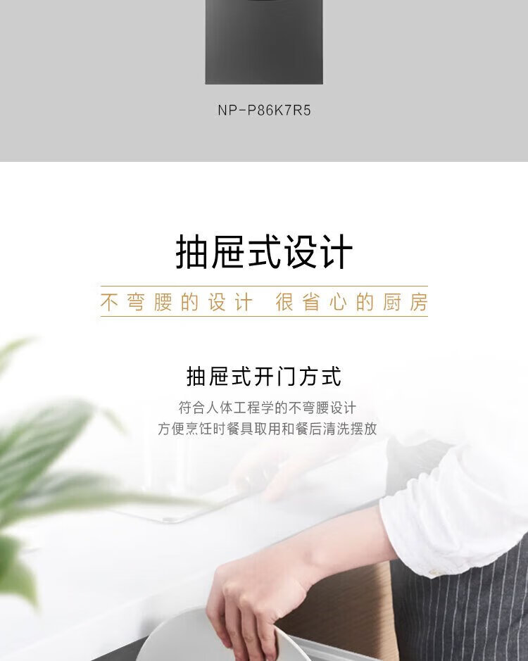 Panasonic's third generation drawer-type dishwasher, built-in for home use under the stove, no need to bend down, large-capacity washable pot, independent heating and drying, high-temperature sterilization NP-P86K7R5