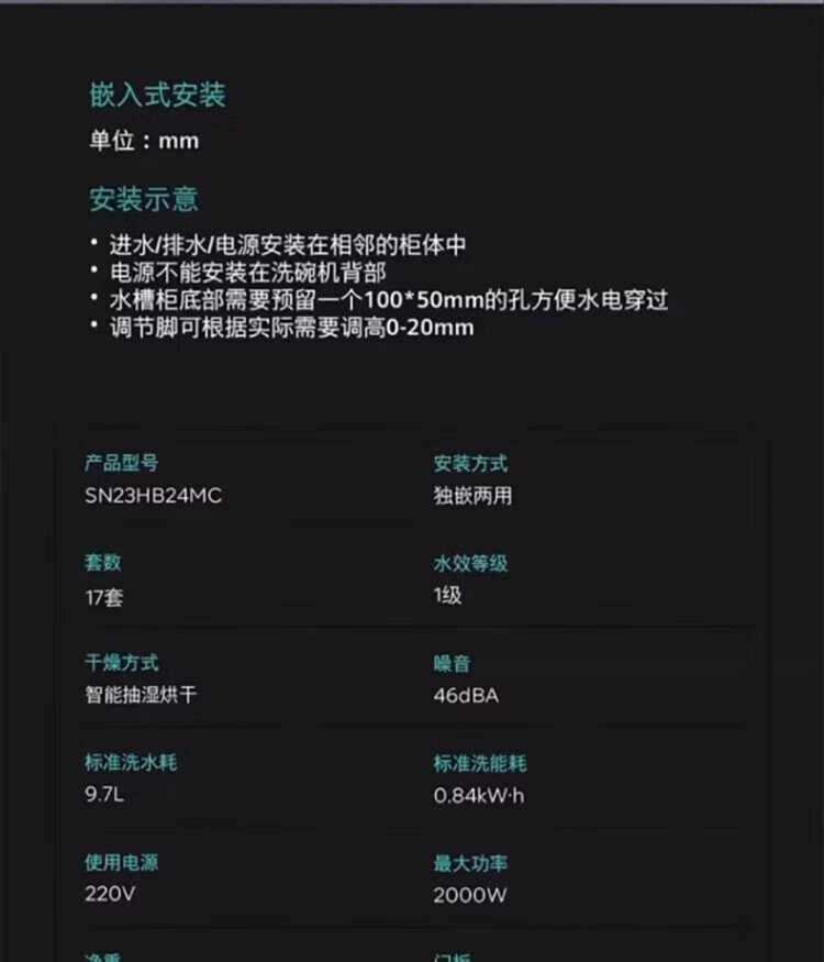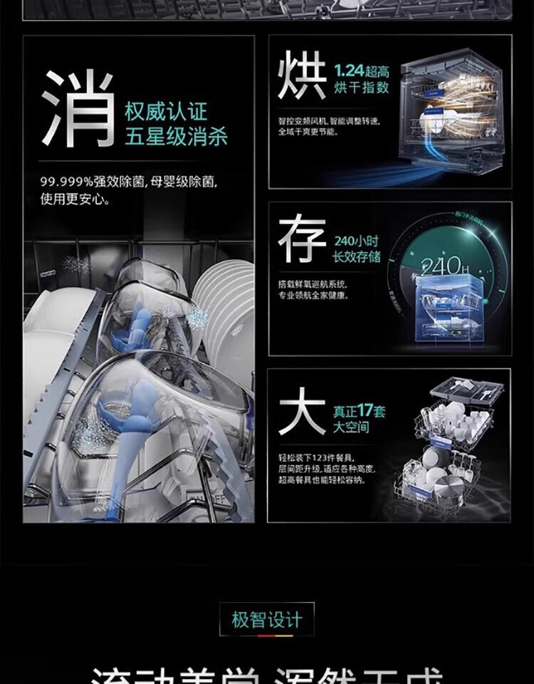 SIEMENS 17 sets of independent embedded smart dishwashers steam sterilization fully automatic SN23HB24MC